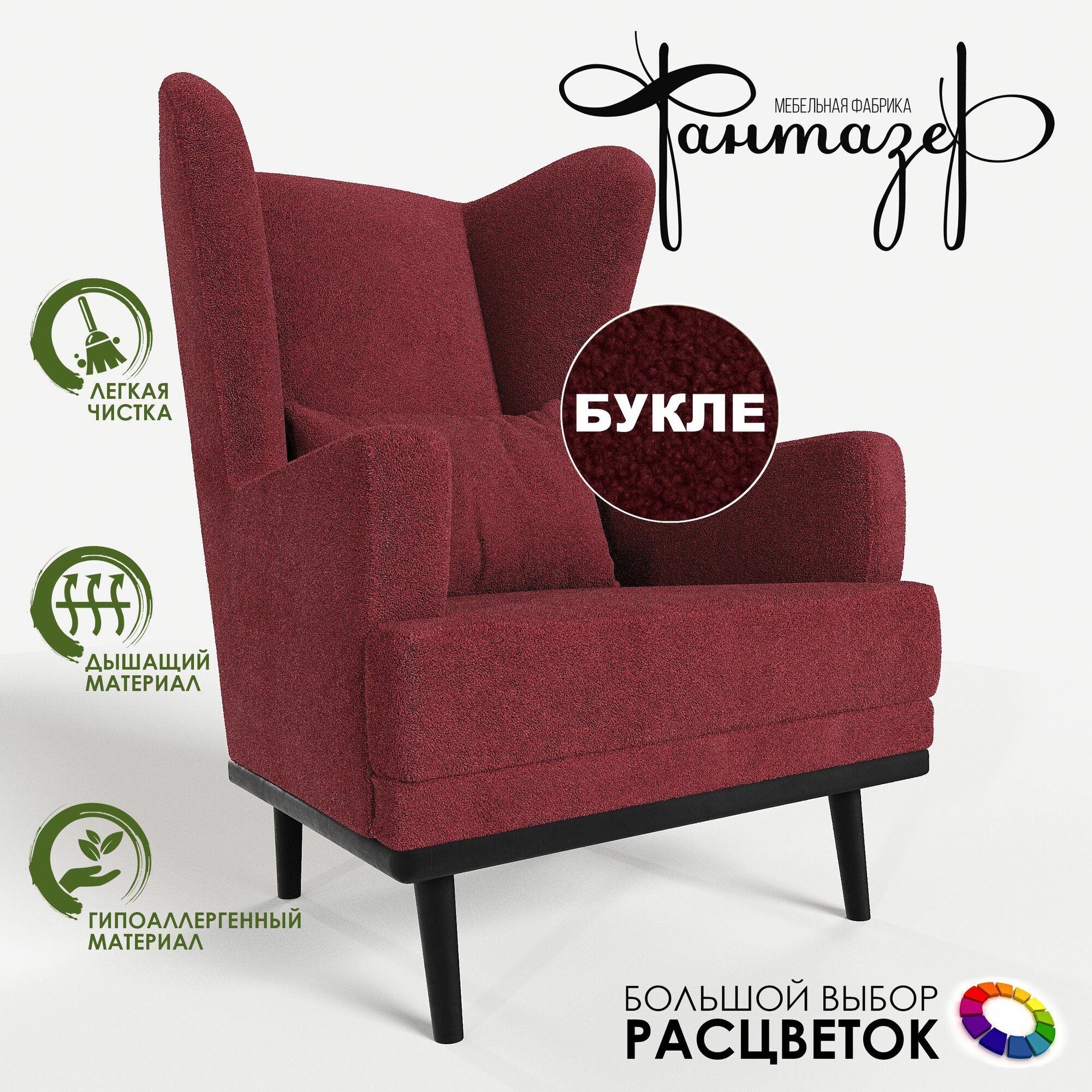 Мягкое кресло с ушами Фантазёр искусственный мех тёмно-бордовый L-5 на высоких ножках, для отдыха и чтения книг. В гостиную, балкон, спальню и переговорную комнату.