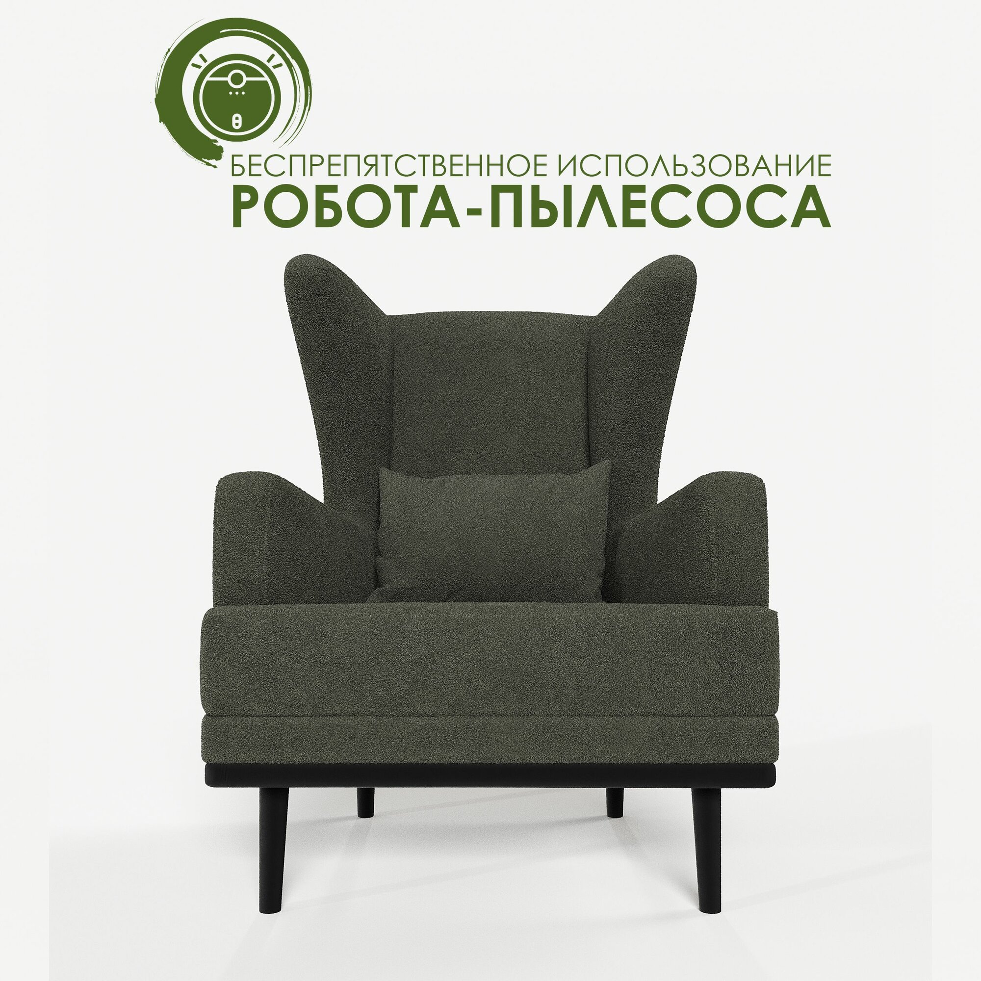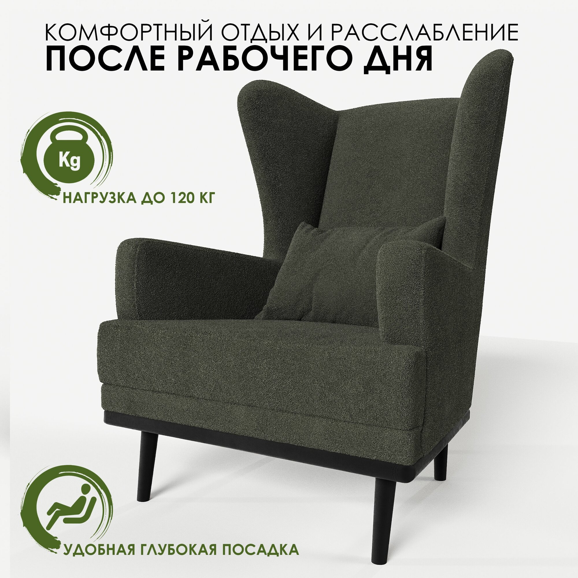 СохранитьМягкое кресло с ушами Фантазёр искусственный мех темно-зелёный L-10 на высоких ножках, для отдыха и чтения книг. В гостиную, балкон, спальню и переговорную комнату. интересное: