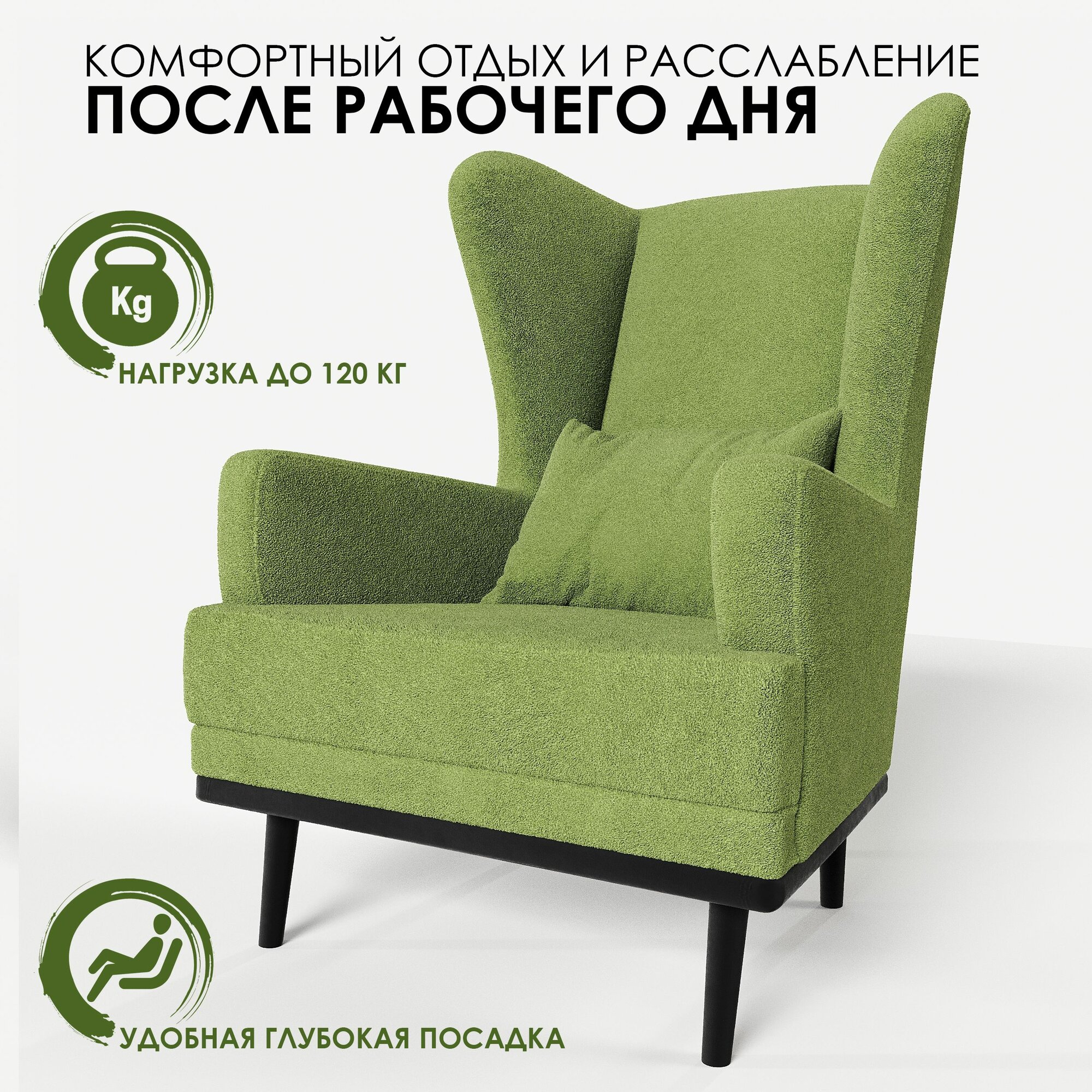 Кресло мягкое с ушами Фантазёр эко-кожа зеленый на высоких ножках, для ожидания, отдыха и чтения книг. Для дома и общественных мест. В гостиную, балкон, спальню и переговорную комнату.