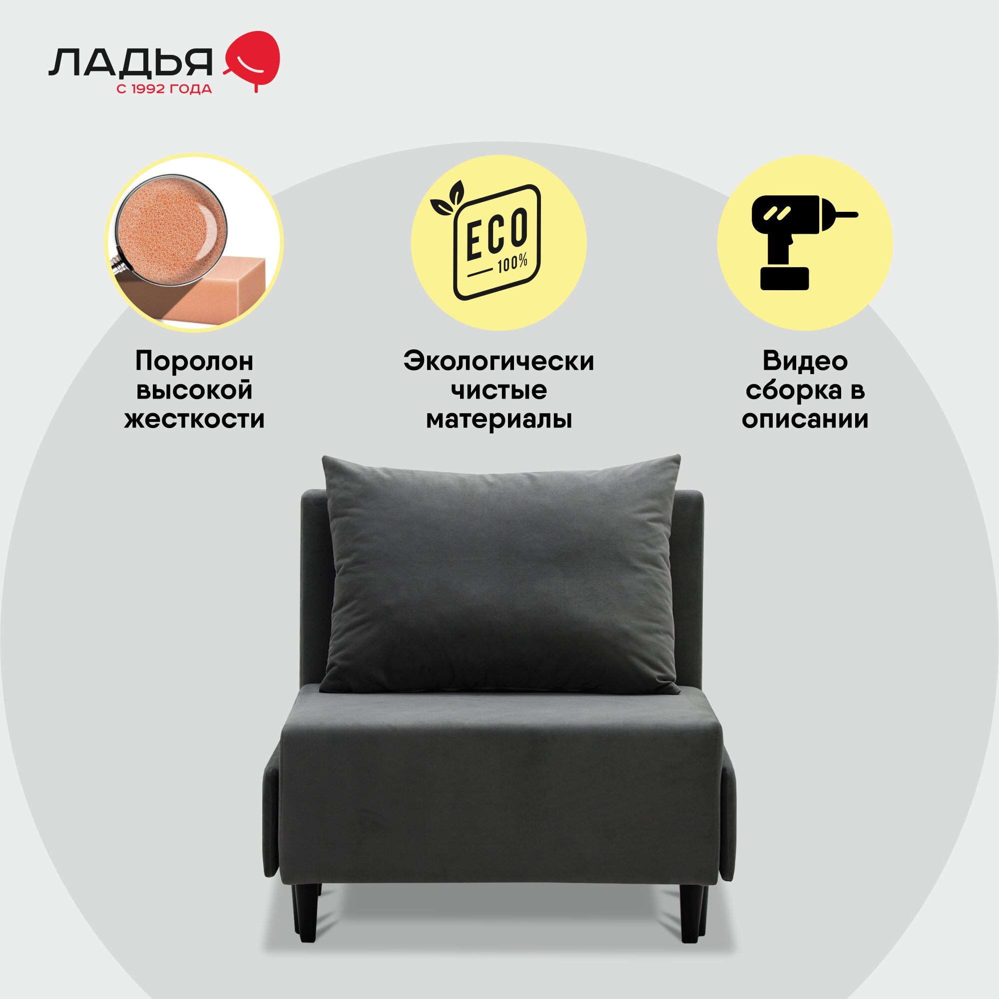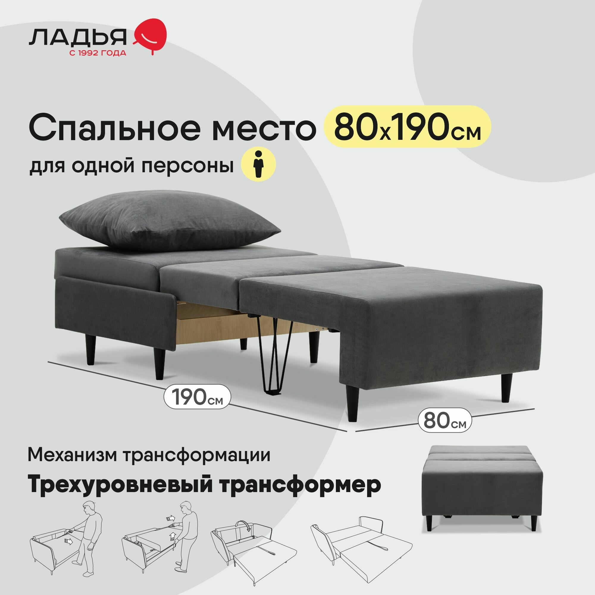 Кресло-кровать раскладное Кардифф 87х87х91 см, еврокнижка, Ладья, спальное место: 80х190 см, Amigo Grey интересное:
