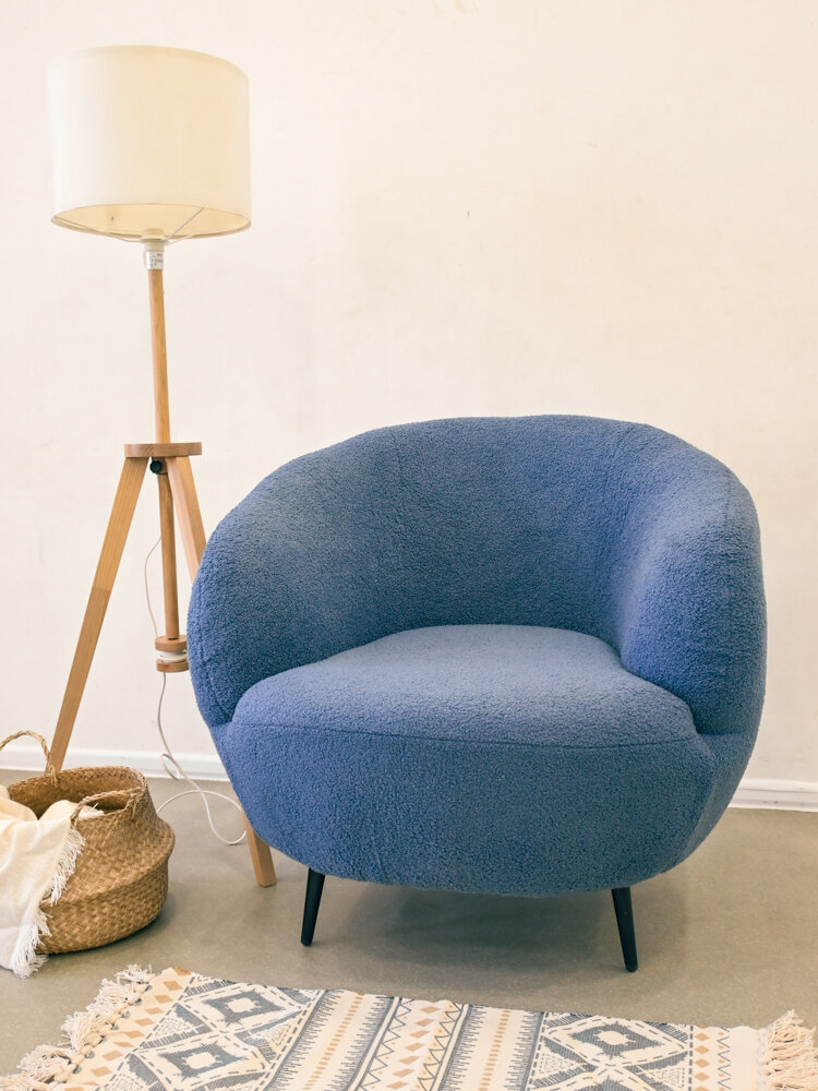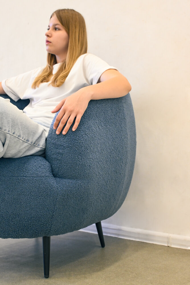 Мягкое кресло Soft Element Даника Dark Blue с высокой спинкой, букле, синее, кресло барашек, в гостиную, на балкон, для отдыха дома