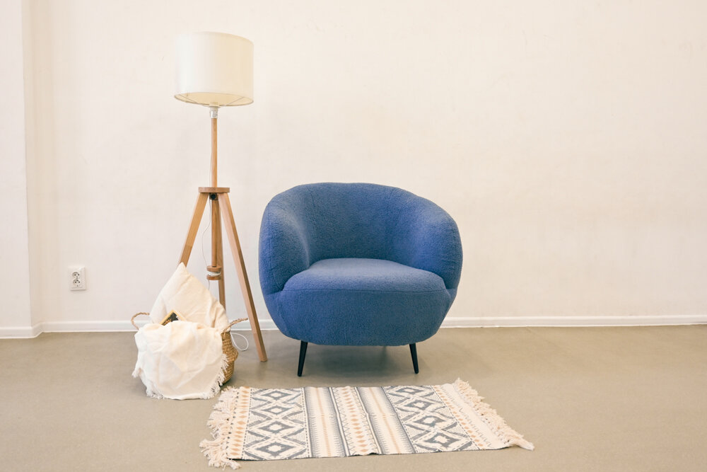 Мягкое кресло Soft Element Даника Dark Blue с высокой спинкой, букле, синее, кресло барашек, в гостиную, на балкон, для отдыха дома