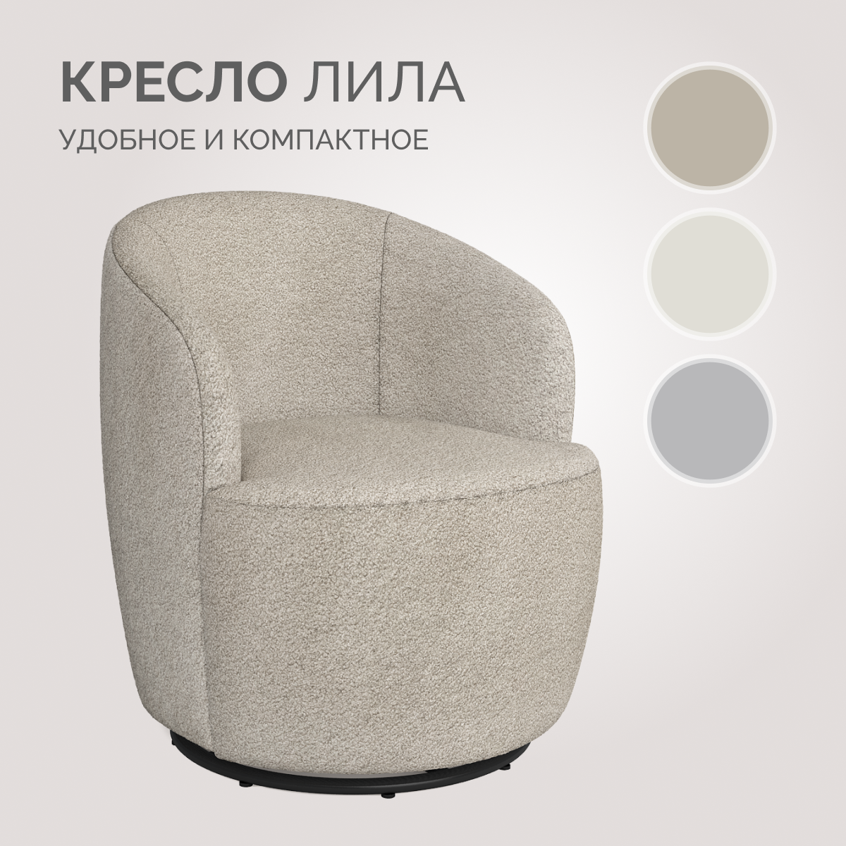 Кресло поворотное Лила Флаффи 01 (молочный), "Твой Диван", для дома