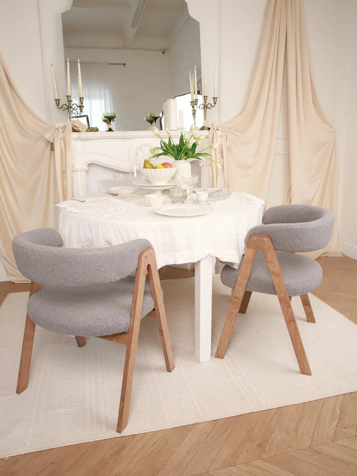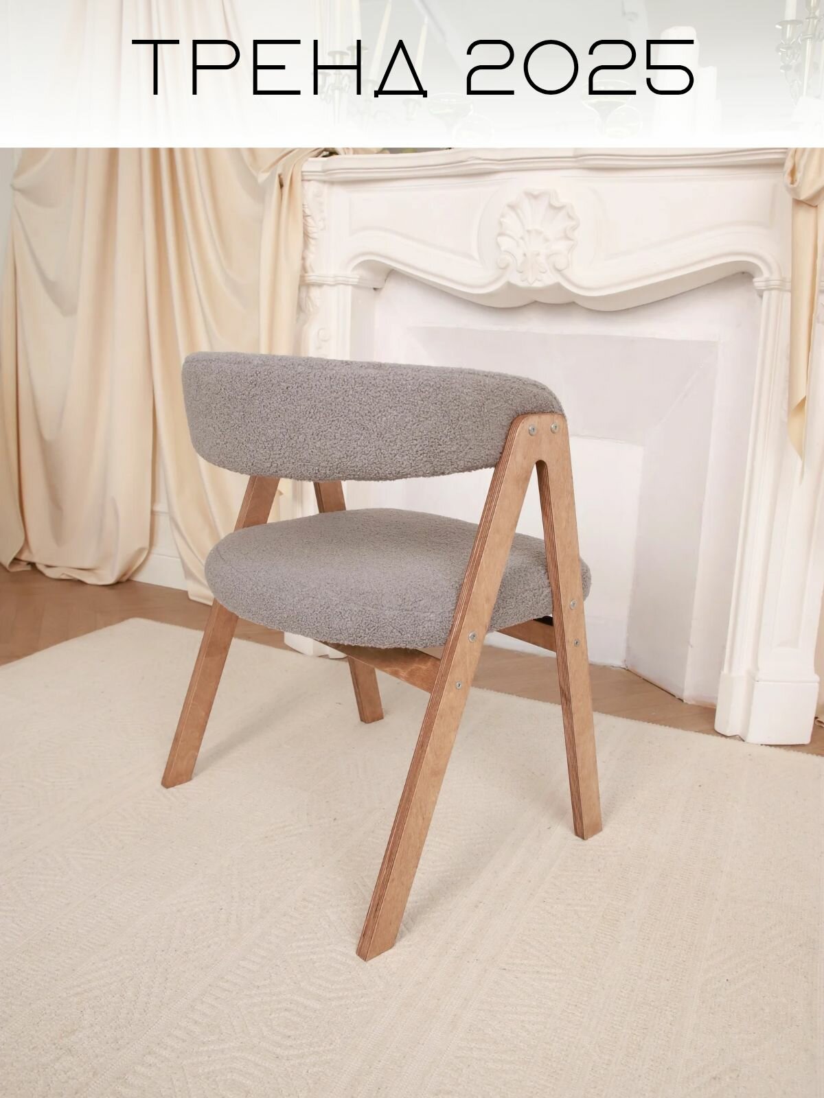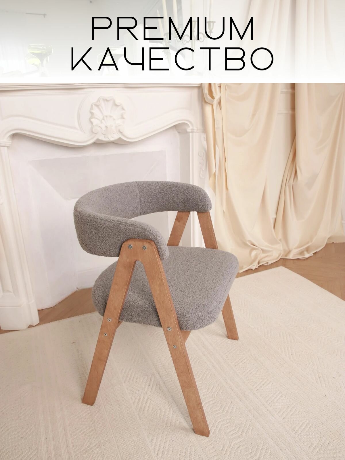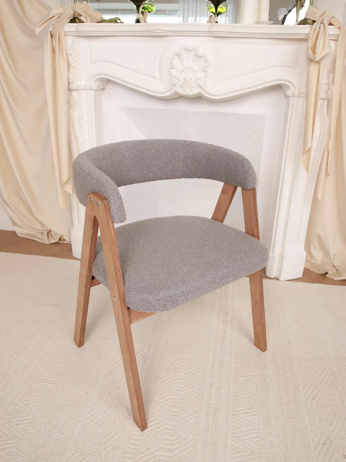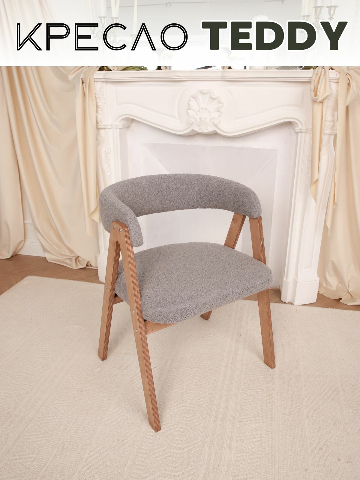 Кресло-стул мягкое букле для дома Teddy с подлокотниками, береза