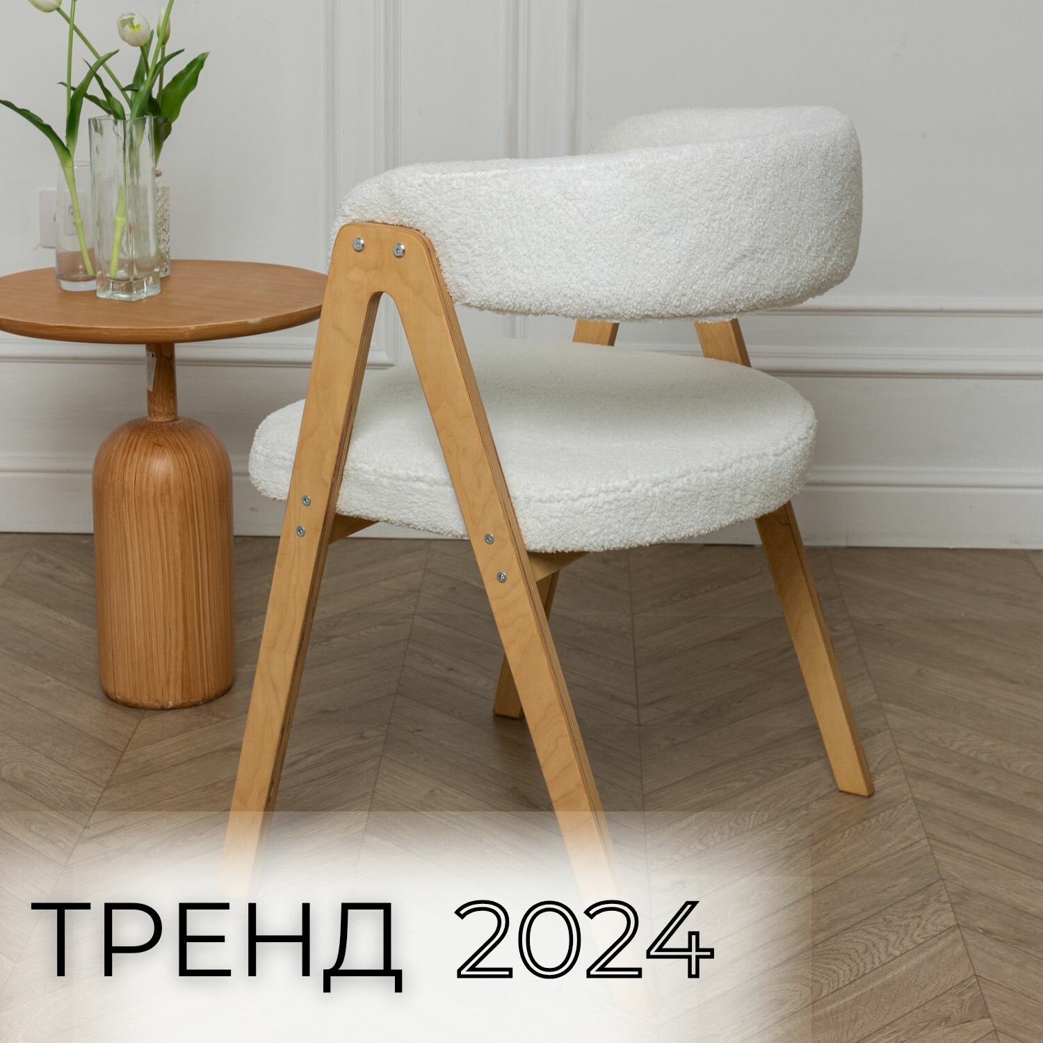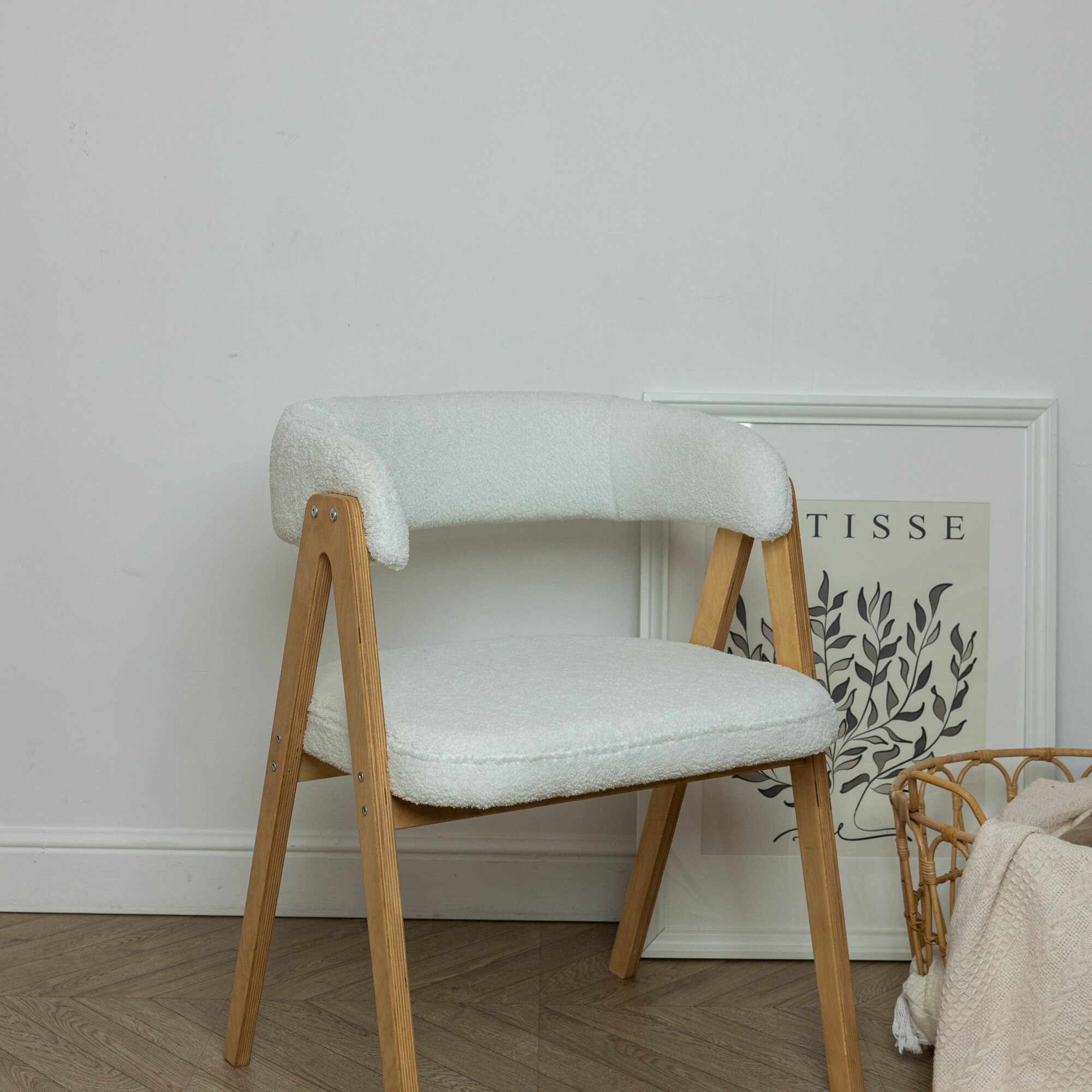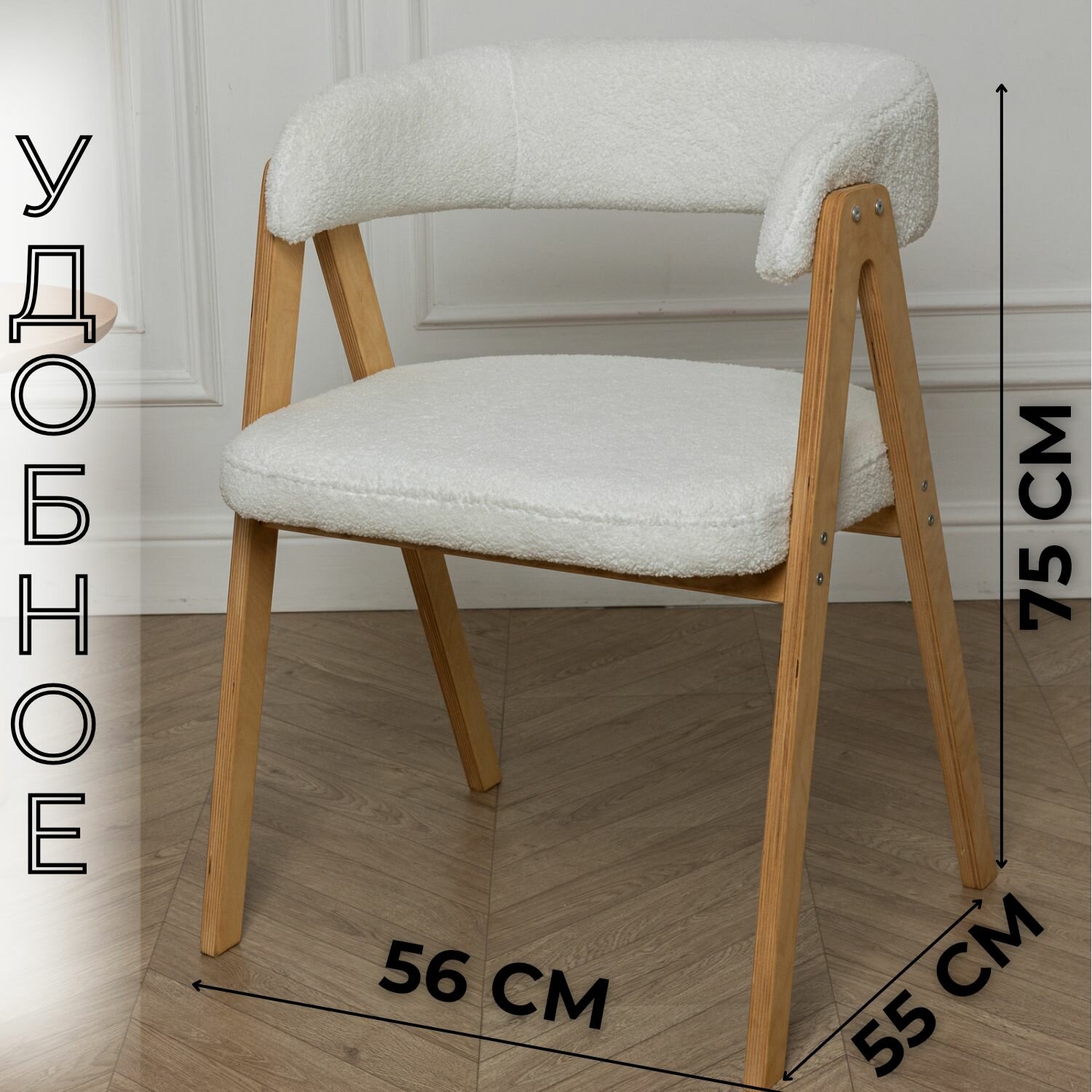 Кресло-стул мягкое букле для дома Teddy с подлокотниками, береза