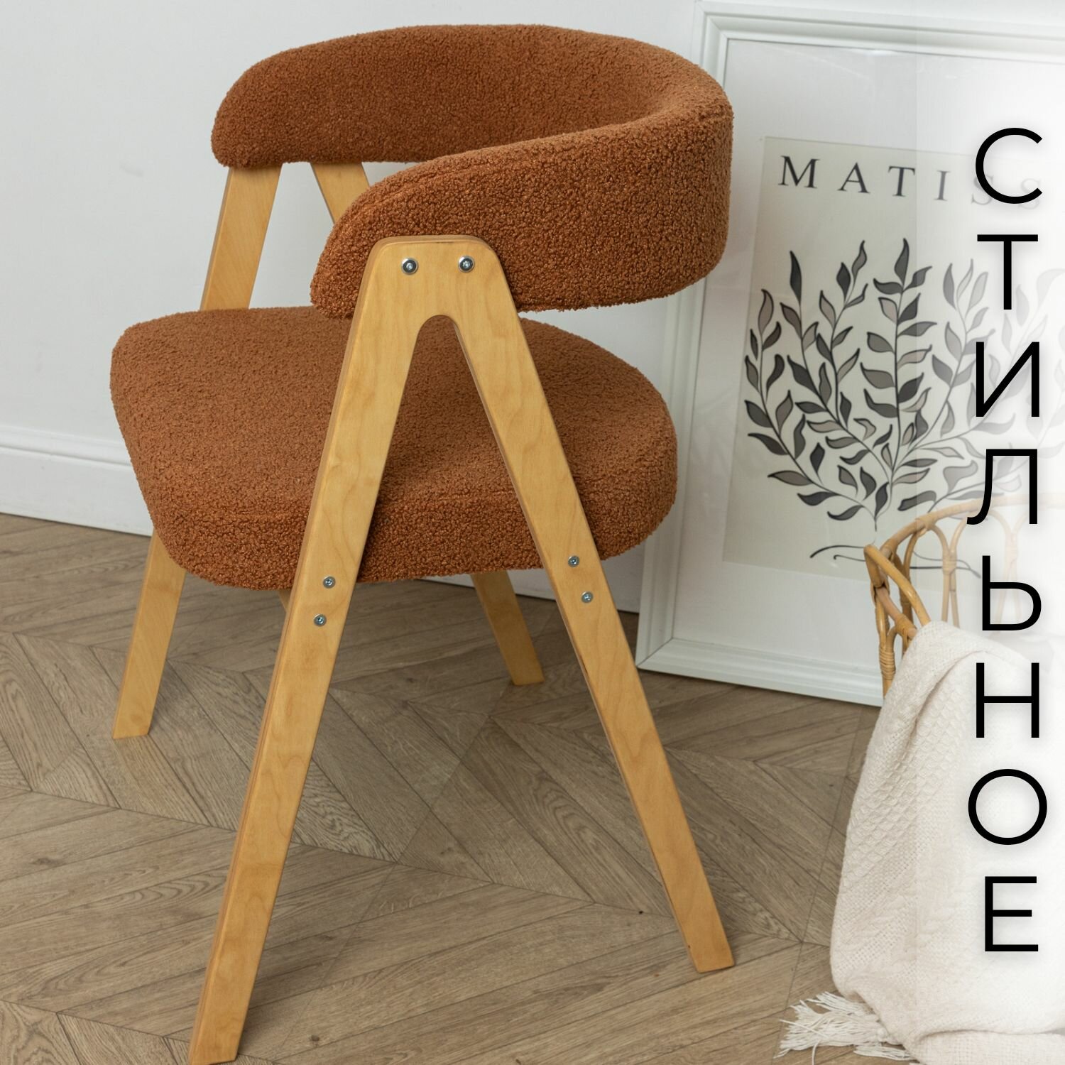 Кресло-стул мягкое букле для дома Teddy с подлокотниками, береза