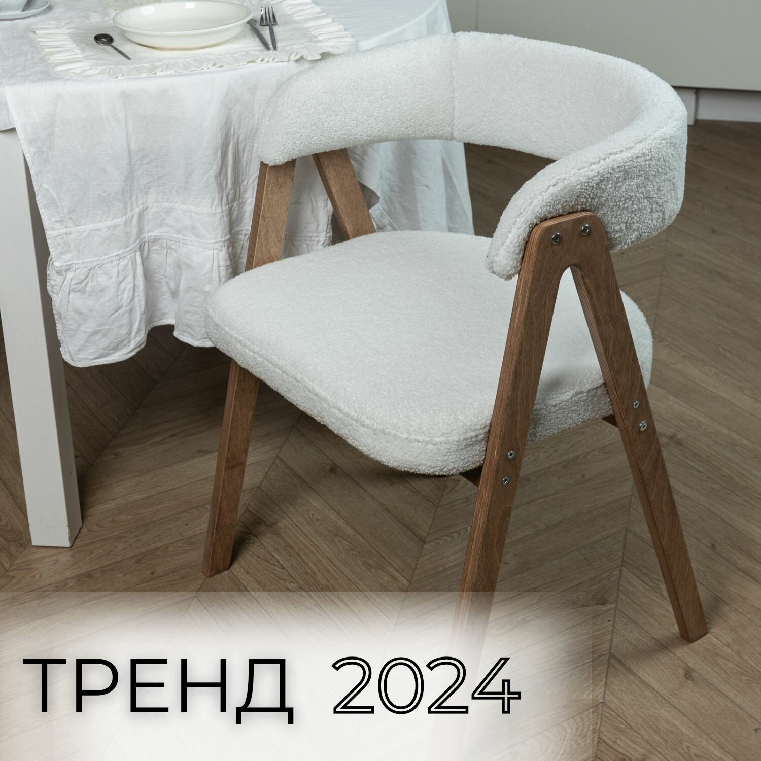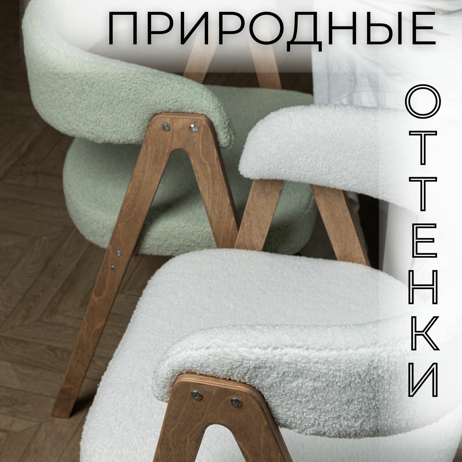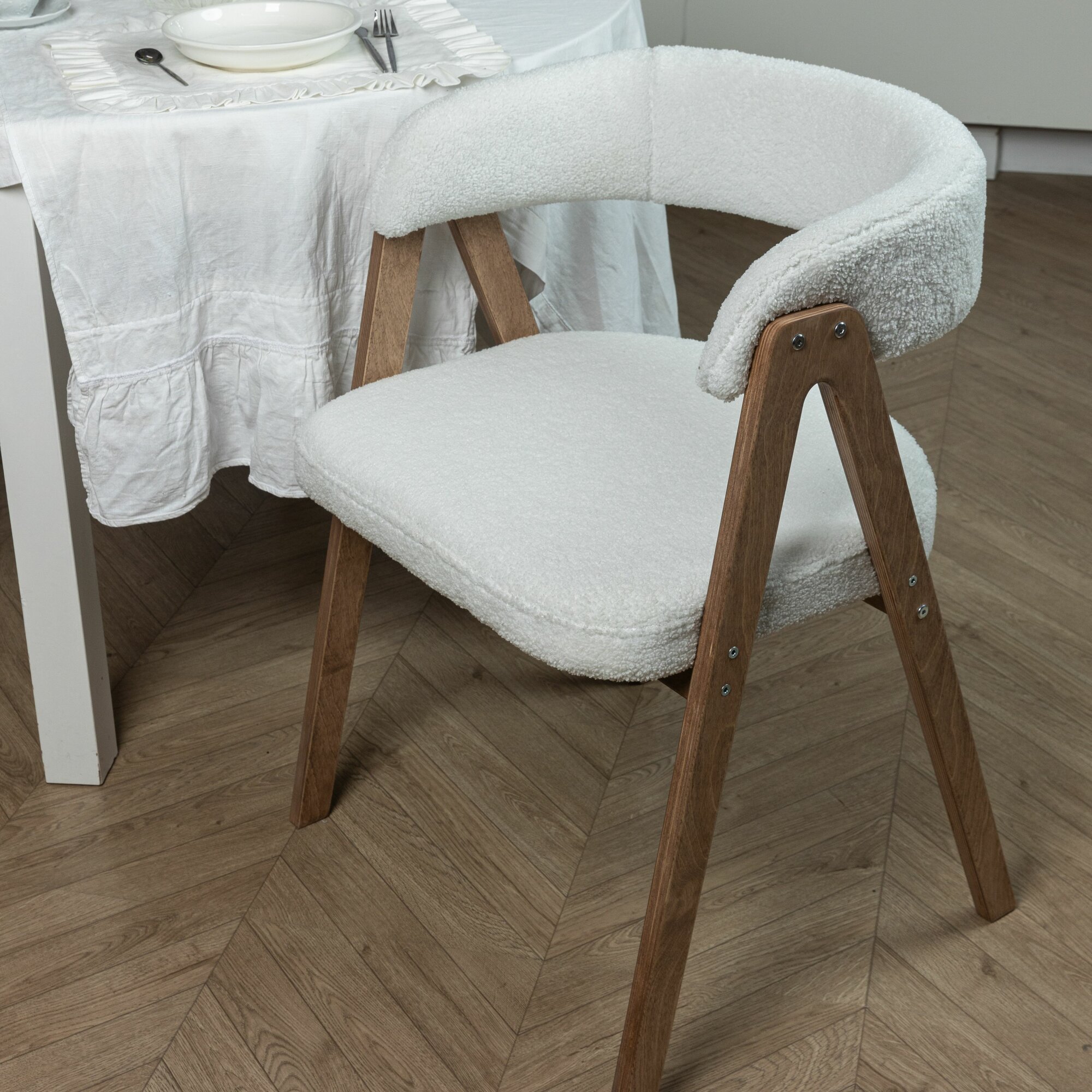 Кресло-стул мягкое букле для дома Teddy с подлокотниками, береза