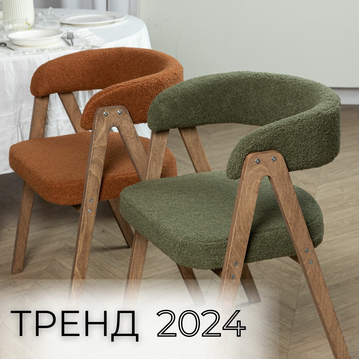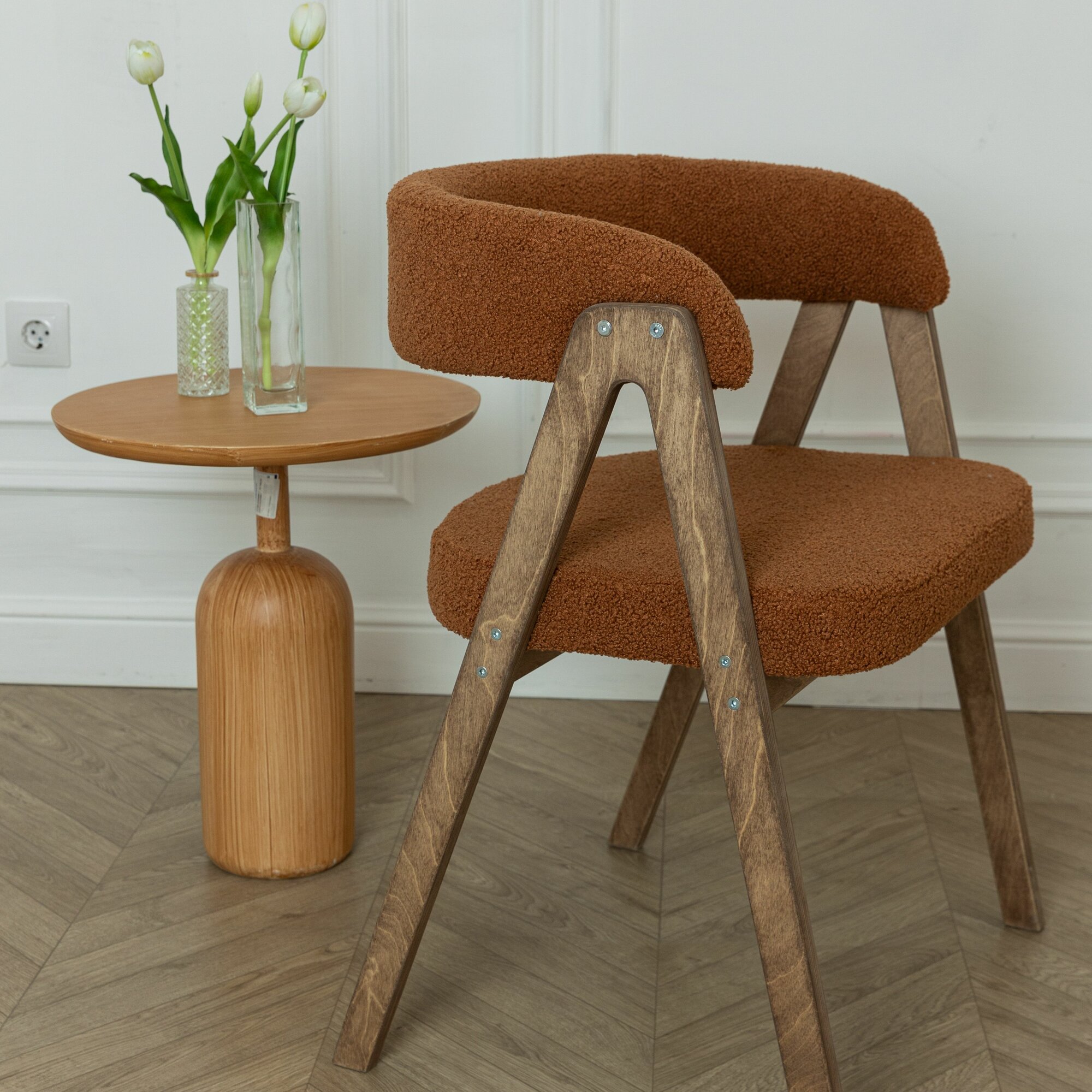Кресло-стул мягкое букле для дома Teddy с подлокотниками, береза