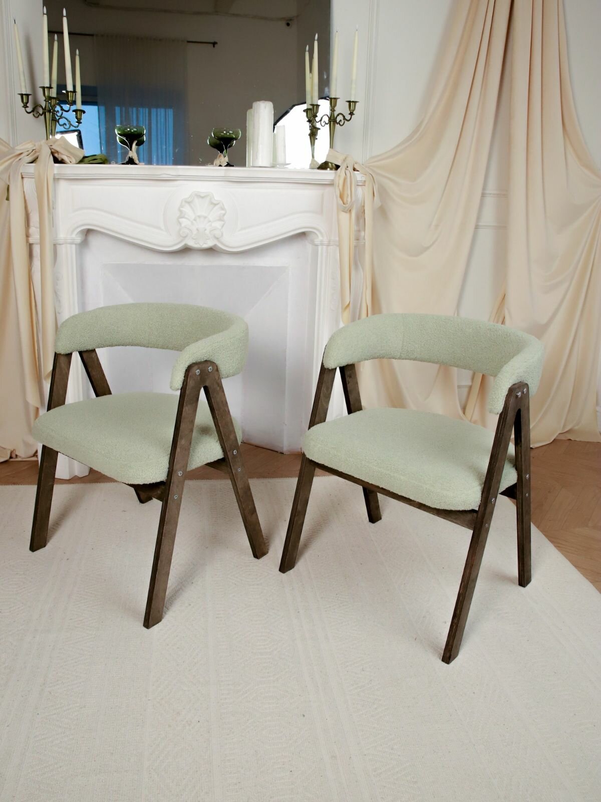 Кресло-стул мягкое букле для дома Teddy с подлокотниками, береза
