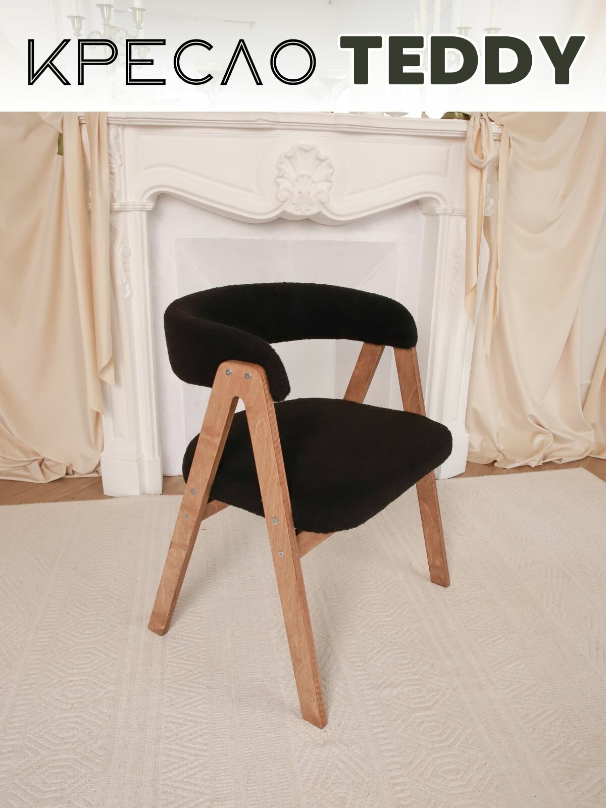 Кресло-стул мягкое букле для дома Teddy с подлокотниками, береза