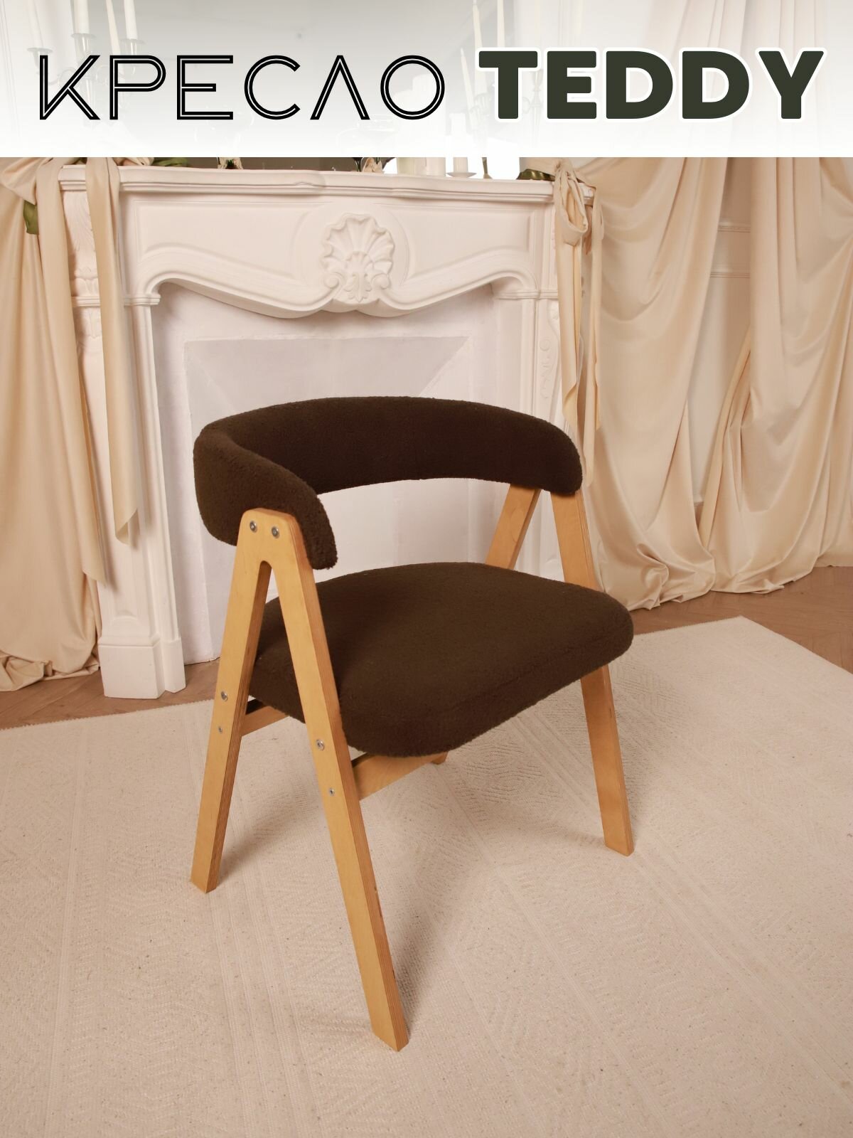 Кресло-стул мягкое букле для дома Teddy с подлокотниками, береза