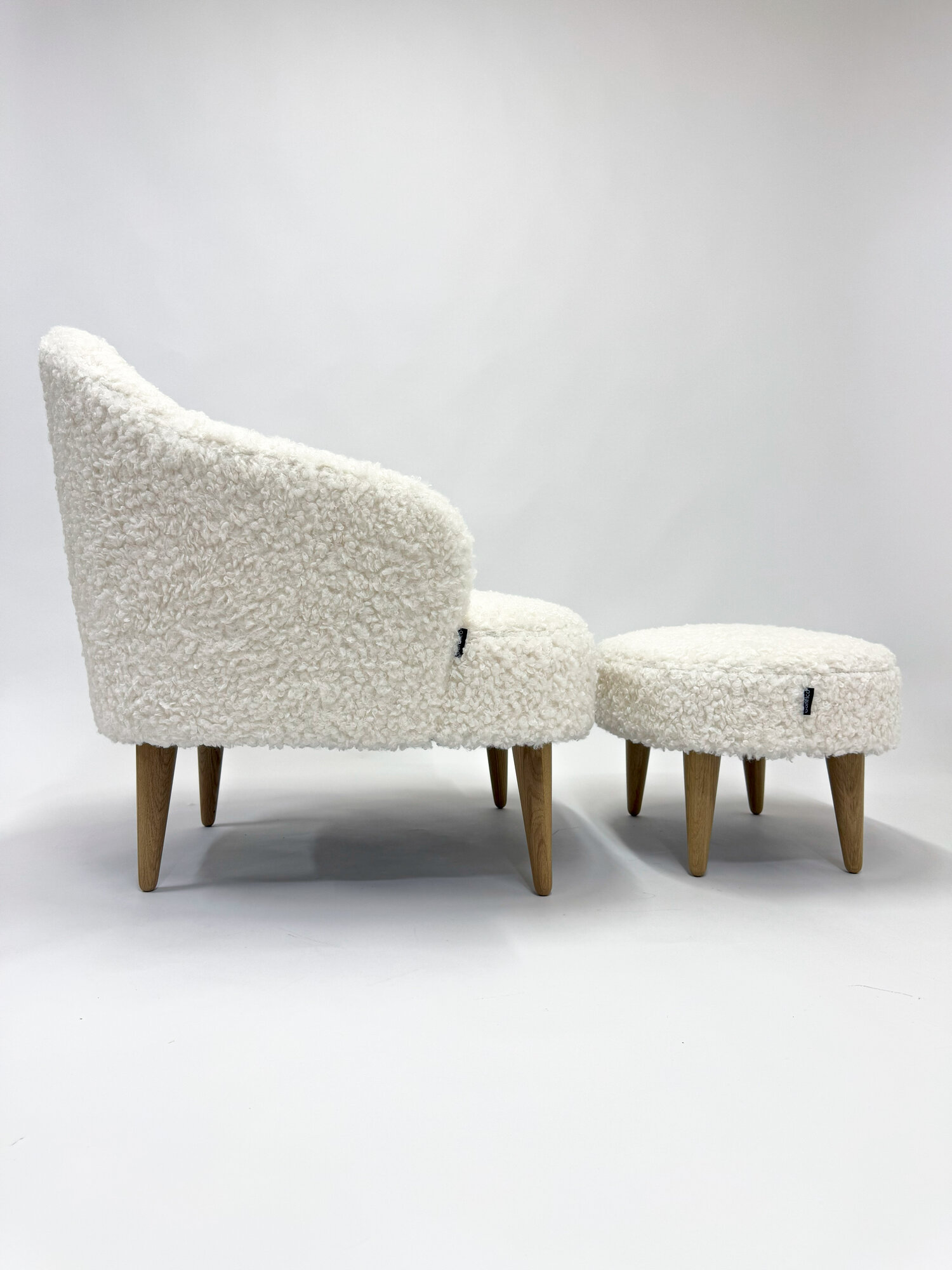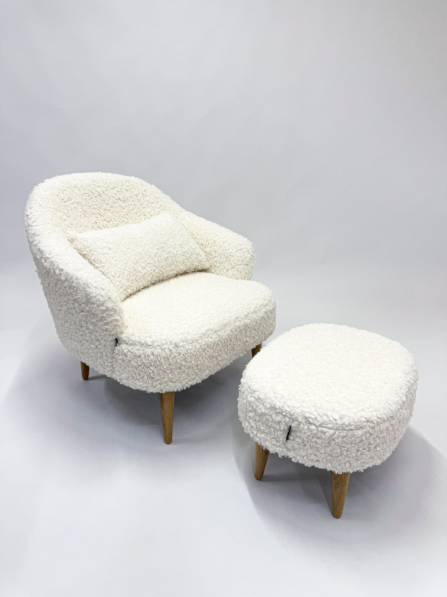 Комплект классическое кресло "Унно" + пуф, Кремовый мех, кресло барашек