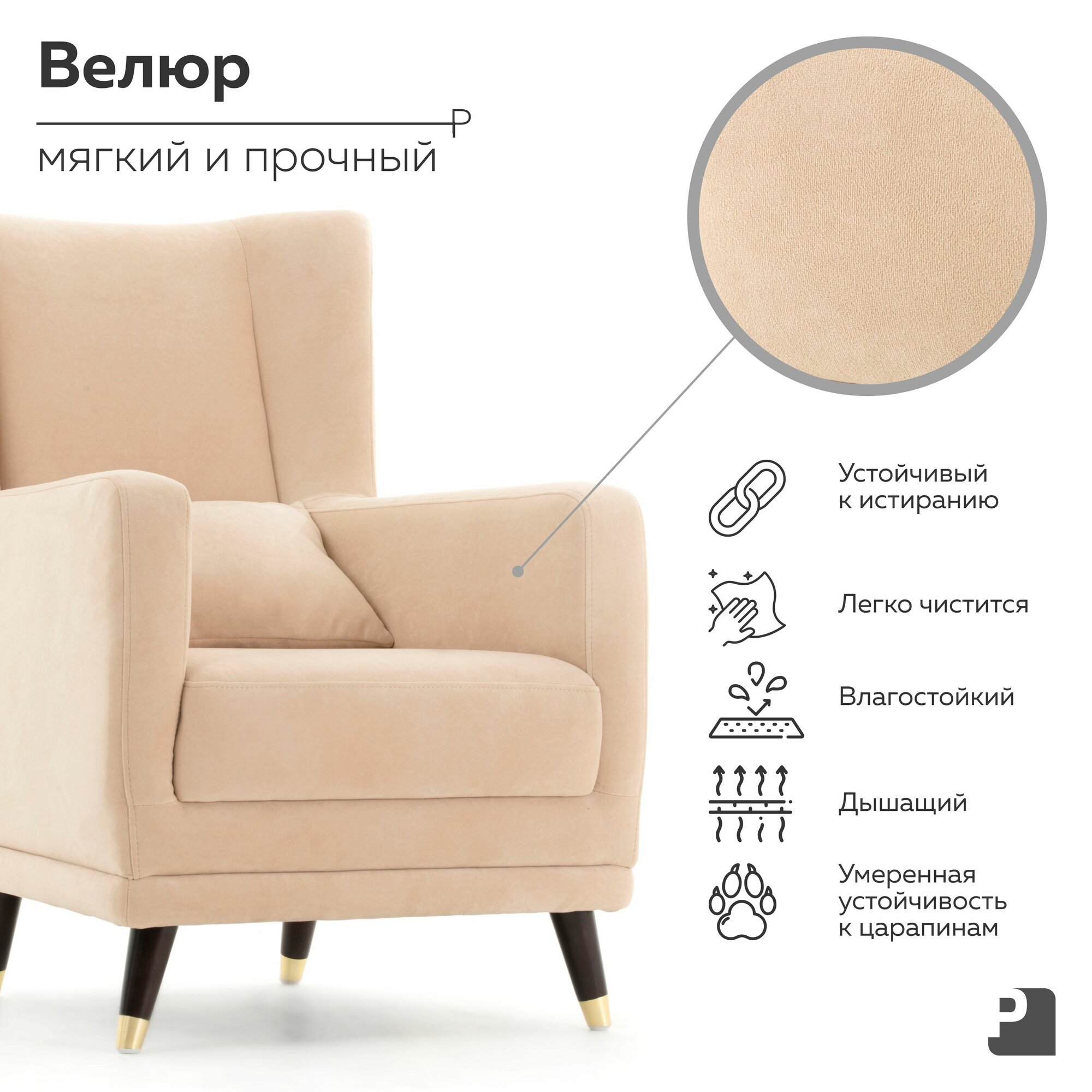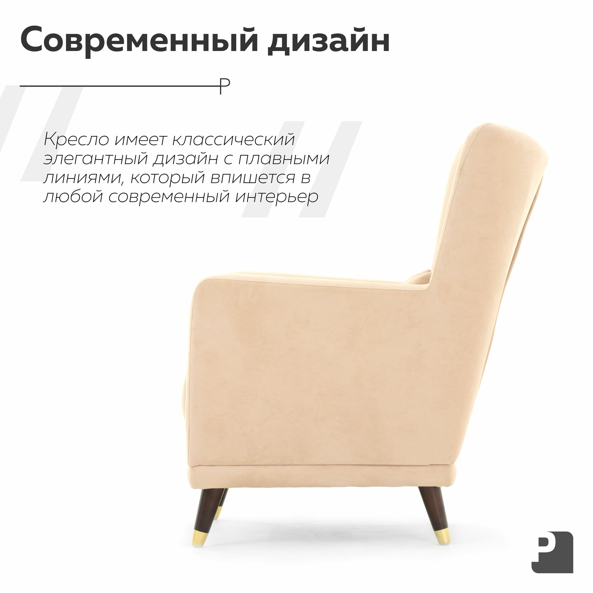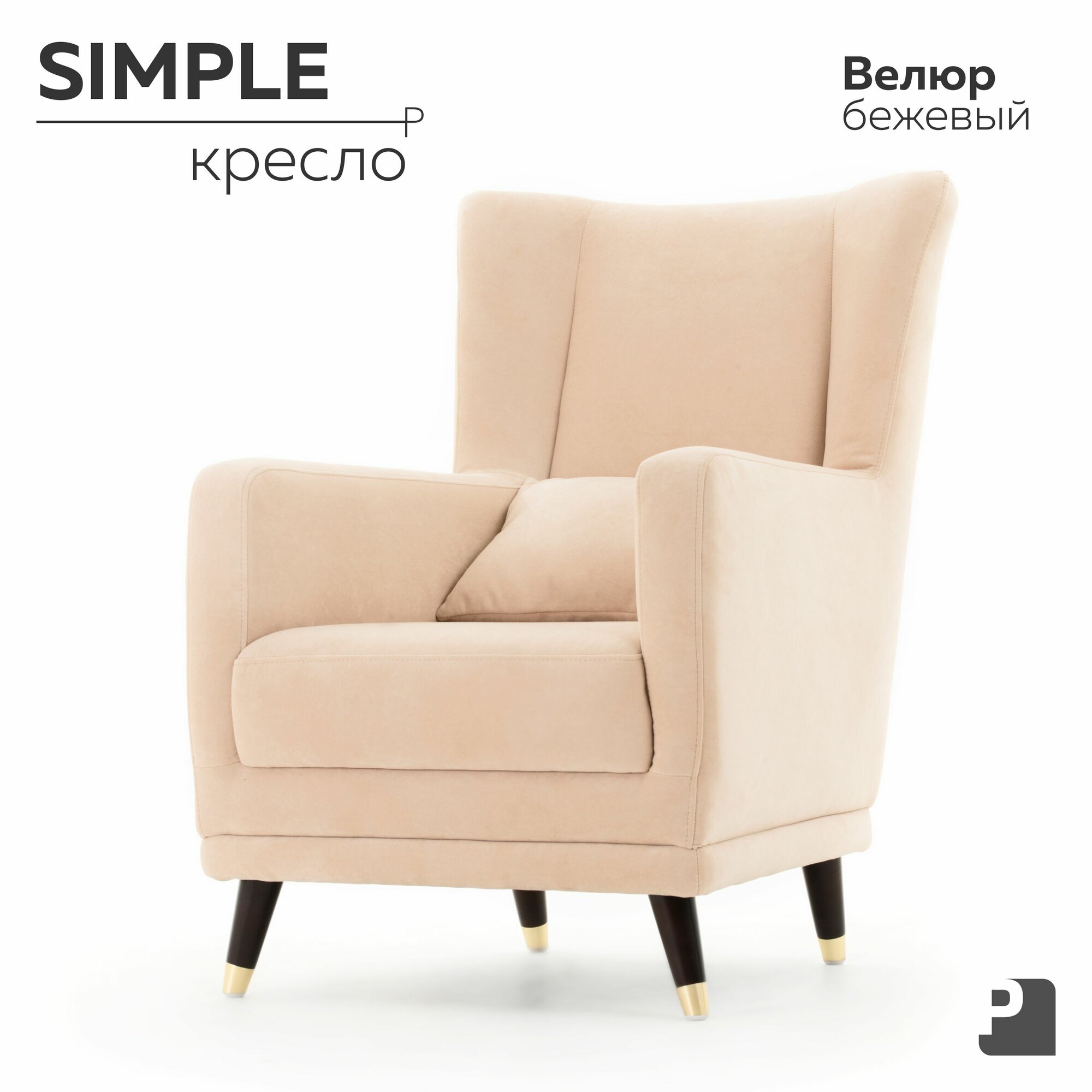 Кресло SIMPLE Мебельное Бюро Perevalov, велюр, бежевое, с ножками и подлокотниками интересное: