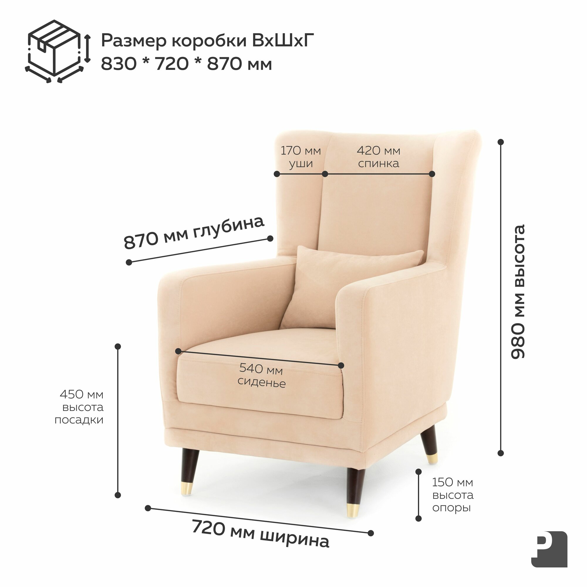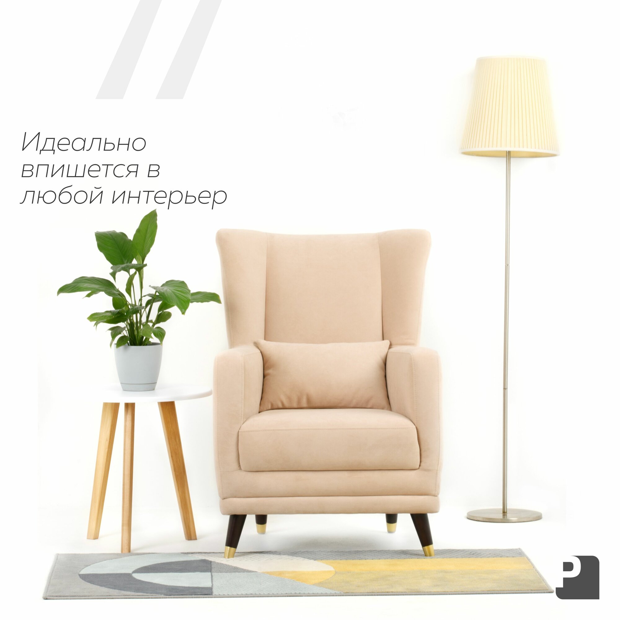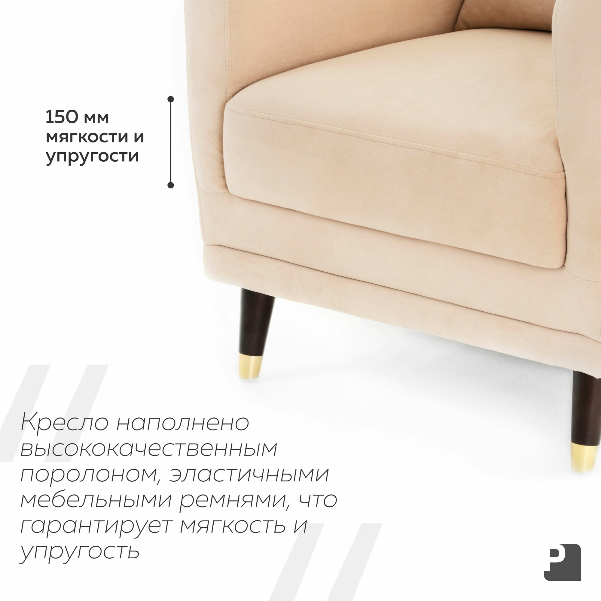 Кресло SIMPLE Мебельное Бюро Perevalov, велюр, бежевое, с ножками и подлокотниками интересное: