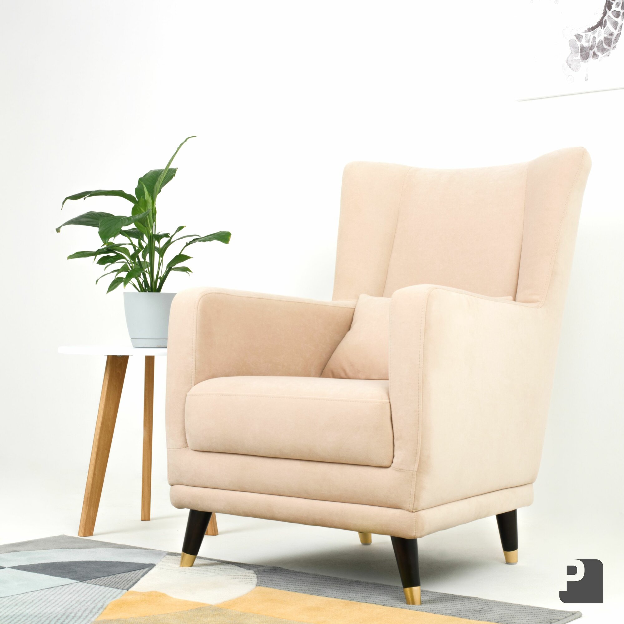 Купить Кресло SIMPLE Мебельное Бюро Perevalov, велюр, бежевое, с ножками и подлокотниками