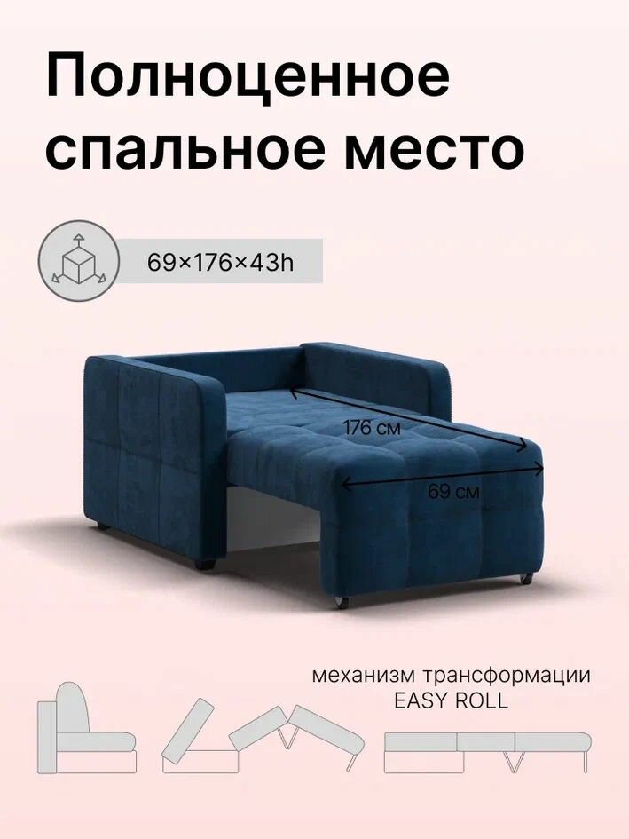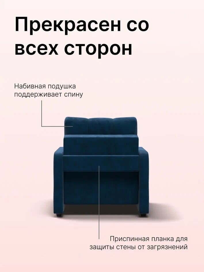 СохранитьКресло-кровать Денди Слим, велюр Monolit синий, выкатной механизм, 90х103х90 см интересное: