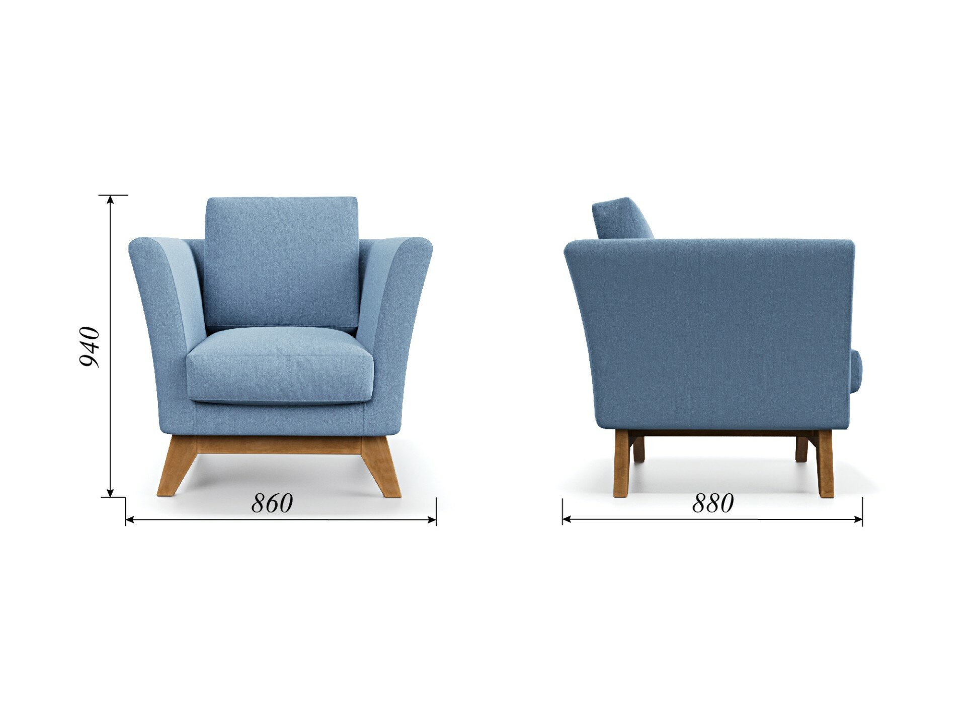 Купить Мягкое кресло Soft Element Дублин Blue, шенилл, деревянные ножки, скандинавский лофт, в гостиную, на дачу, офисное, для кафе и ресторана