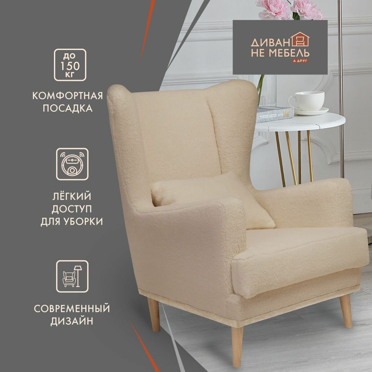 Кресло Оскар в гостиную, мягкое для дома и отдыха, букле Lamb Eco 1