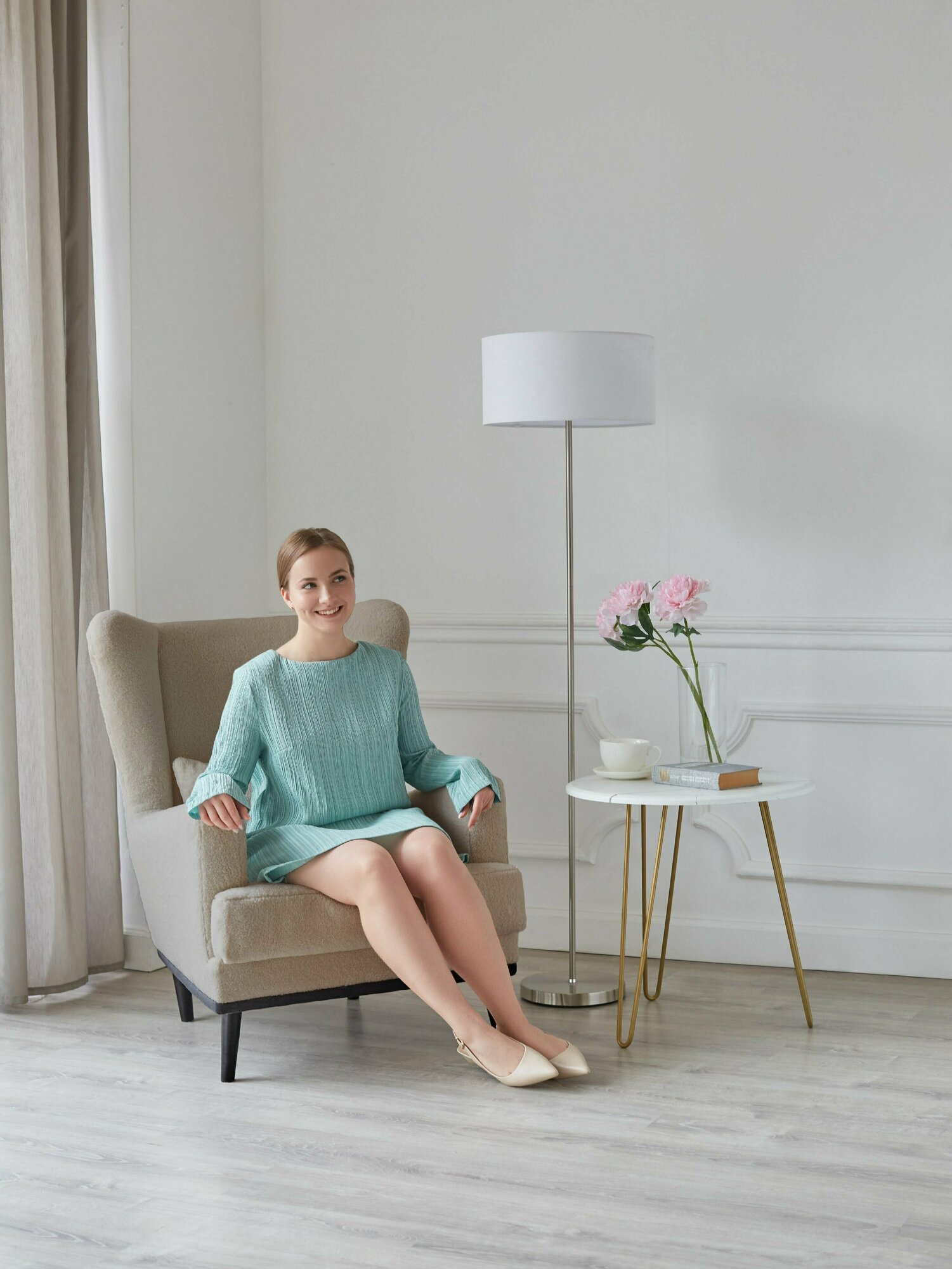 Кресло Оскар мягкое для отдыха в гостиную, на ножках, букле Lambeco 4