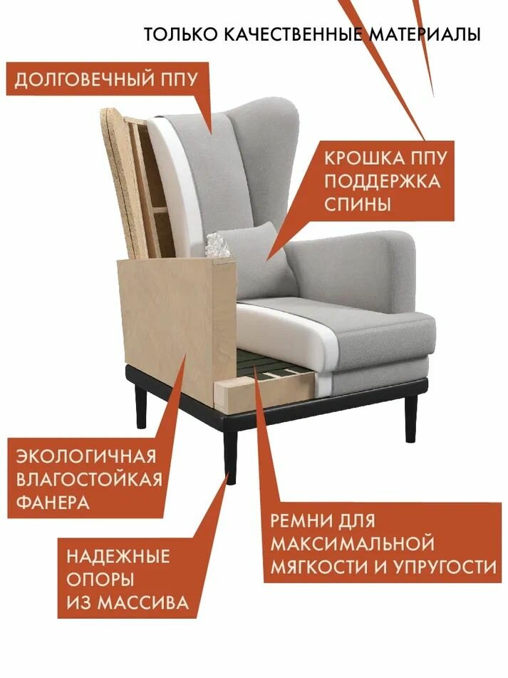 Кресло Оскар мягкое для отдыха в гостиную, на ножках, букле Lambeco 4