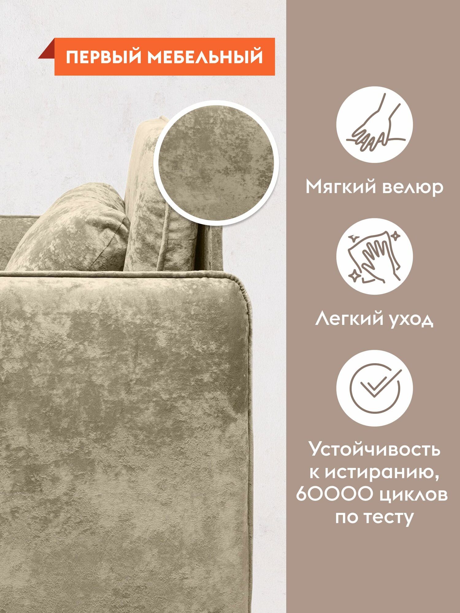 Кресло-кровать Айрон раскладное, выкатное, 80х196 см спальное место, Латте, велюр интересное:
