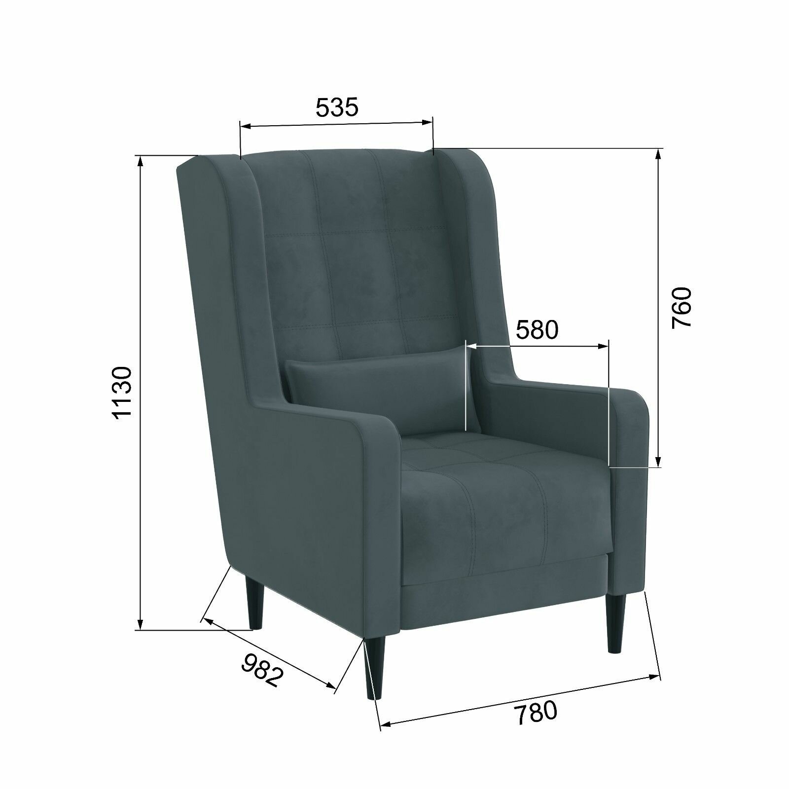 Кресло мягкое со спинкой Корк, Атлантида, Пенополиуретан , Синтепон, Велюр, Фанера, для дома , офиса 1130х780х982 домани