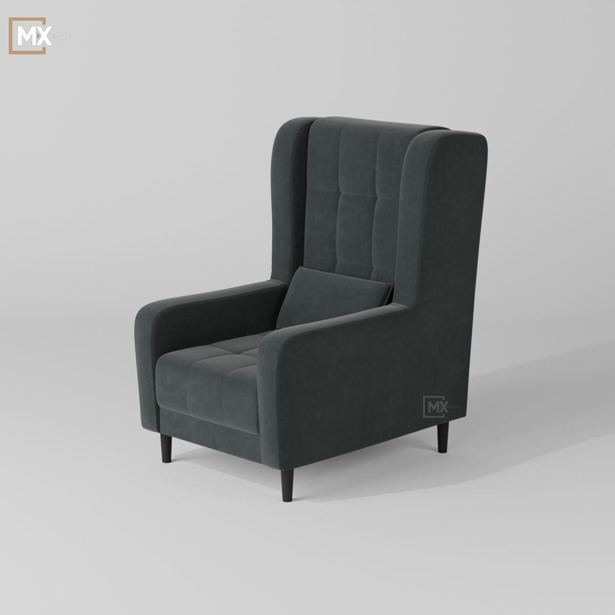 Купить Кресло мягкое интерьерное со спинкой Корк, Серый, Пенополиуретан , Синтепон, Велюр, Фанера, для дома , офиса 1130х780х982 домани