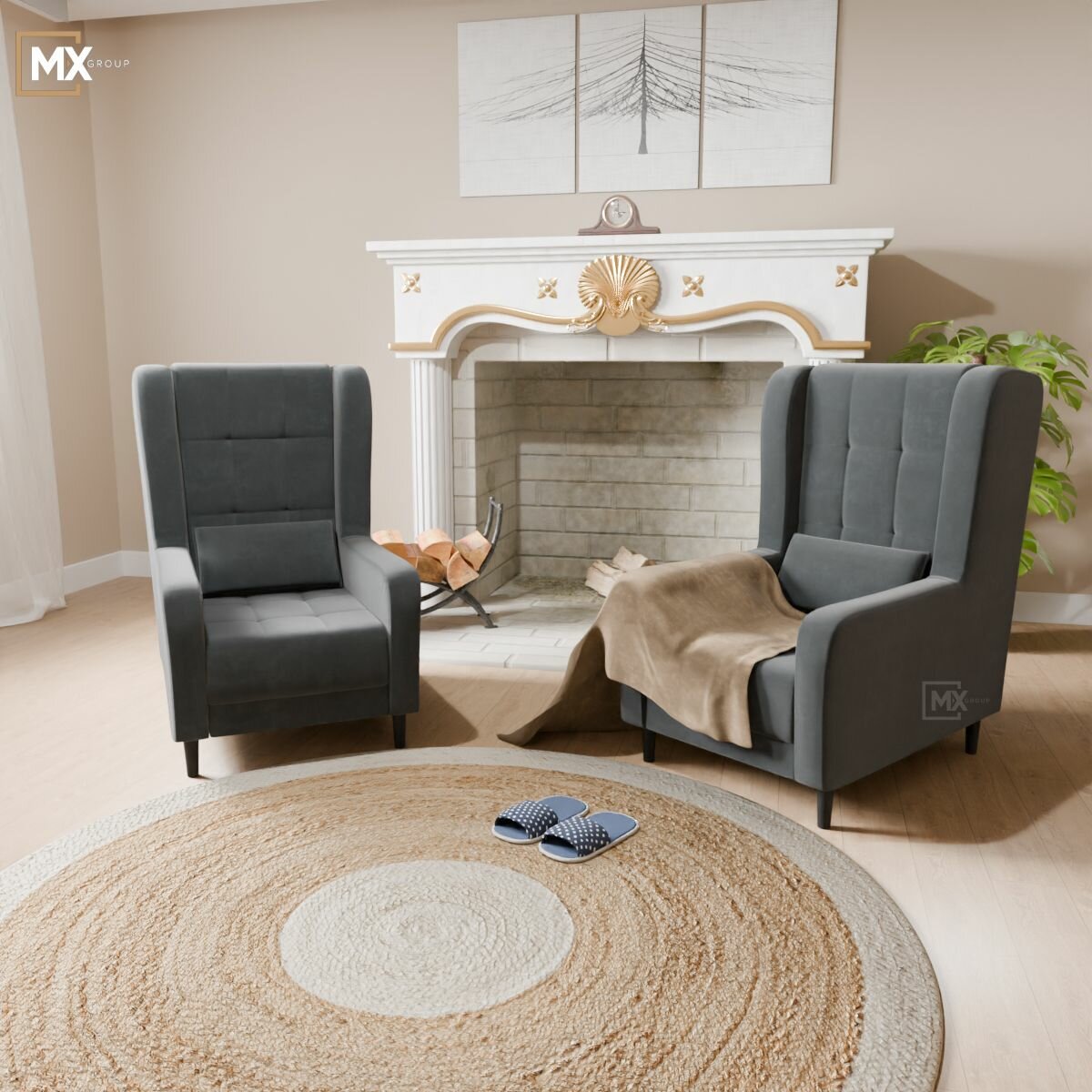 Кресло мягкое для отдыха со спинкой Корк, Светло-серое Пенополиуретан , Синтепон, Велюр, Фанера, для дома , офиса 1130х780х982, домани