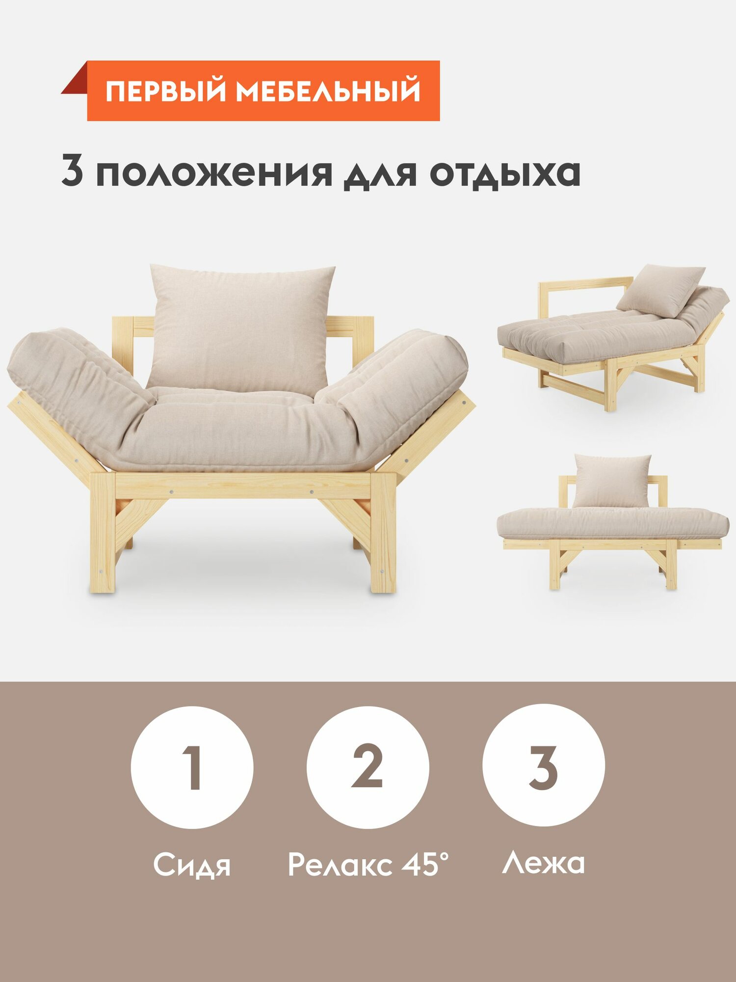 СохранитьКресло мягкое Евро для отдыха дома раскладное, со съемными подушками, 122х77х87 см, Массив / Бежевый, рогожка интересное: