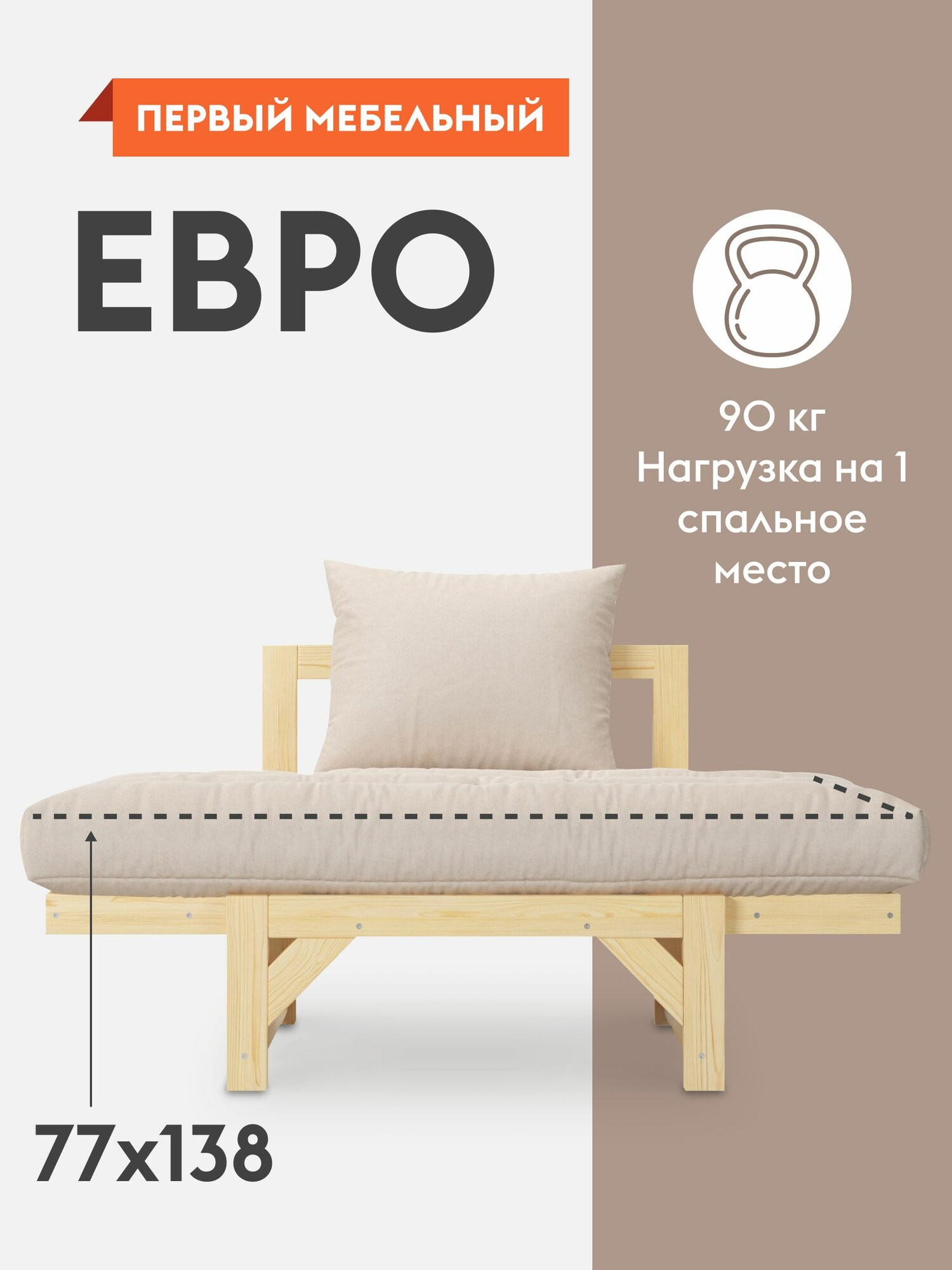 Кресло мягкое Евро для отдыха дома раскладное, со съемными подушками, 122х77х87 см, Массив / Соломенный, рогожка