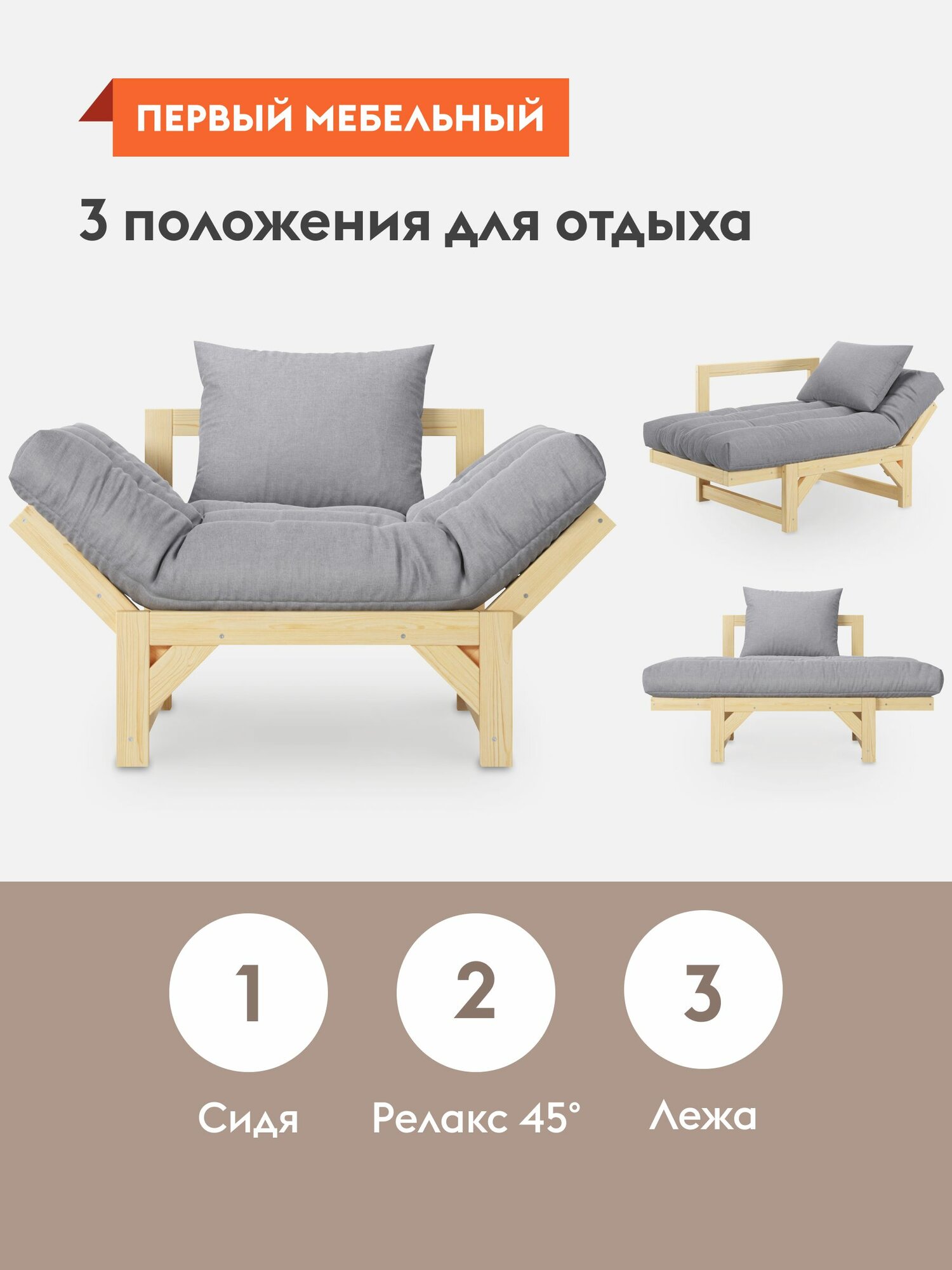 СохранитьКресло мягкое Евро для отдыха дома раскладное, со съемными подушками, 122х77х87 см, Массив / Серебро, рогожка интересное: