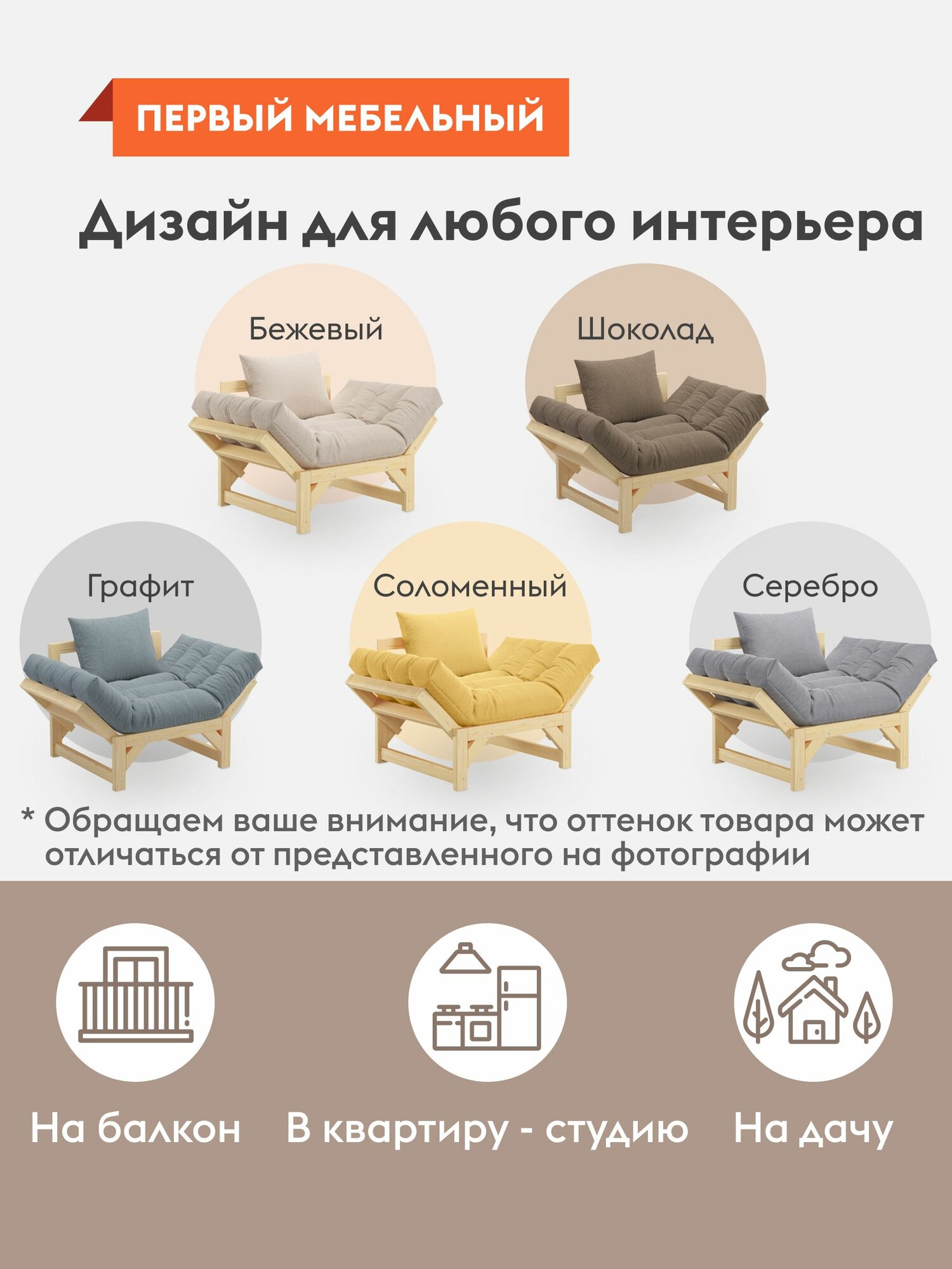 Кресло мягкое Евро для отдыха дома раскладное, со съемными подушками, 122х77х87 см, Массив / Соломенный, рогожка