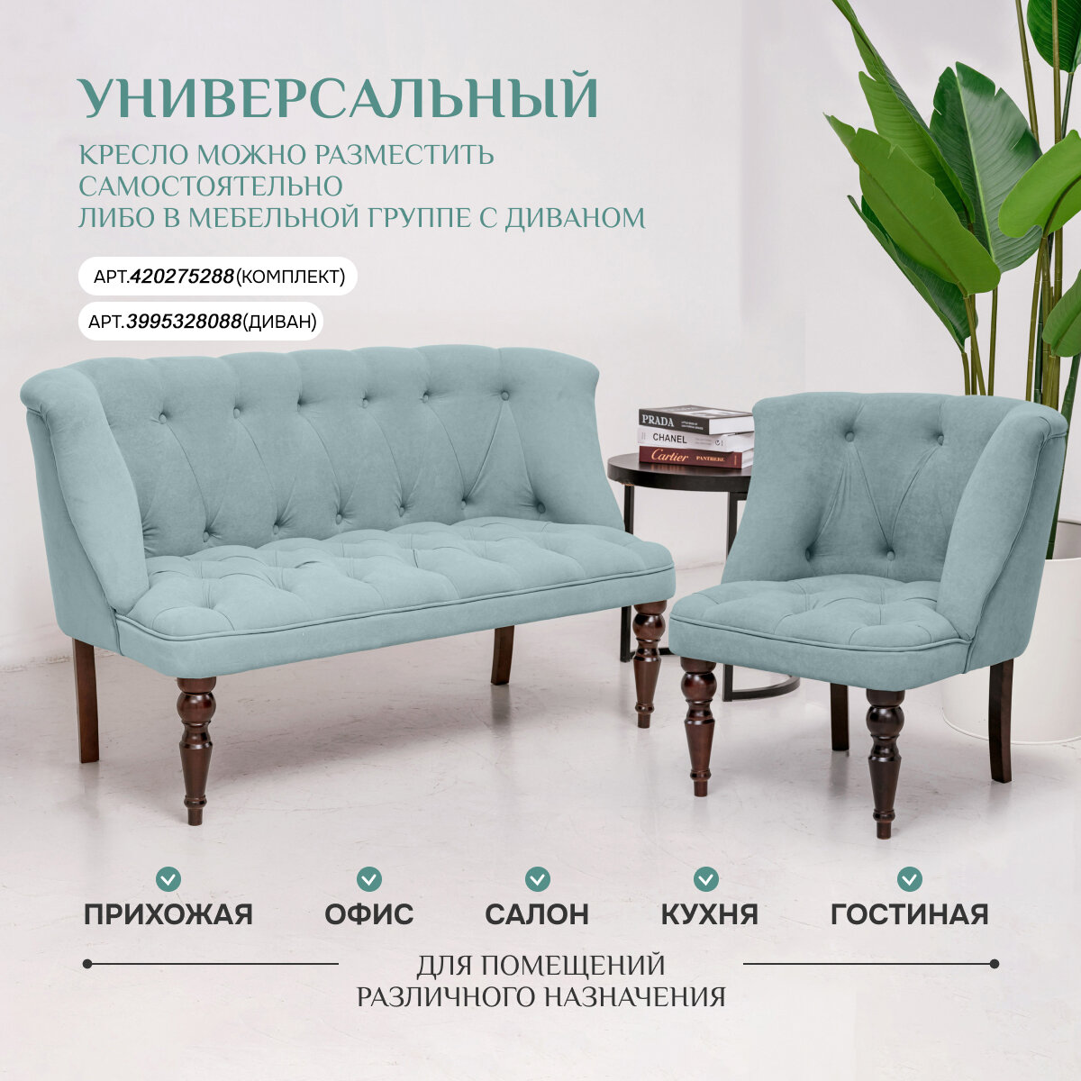 Купить Кресло Brendoss 207 классик для отдыха, каретная стяжка, материал износостойкий велюр, цвет мятный, ножки орех