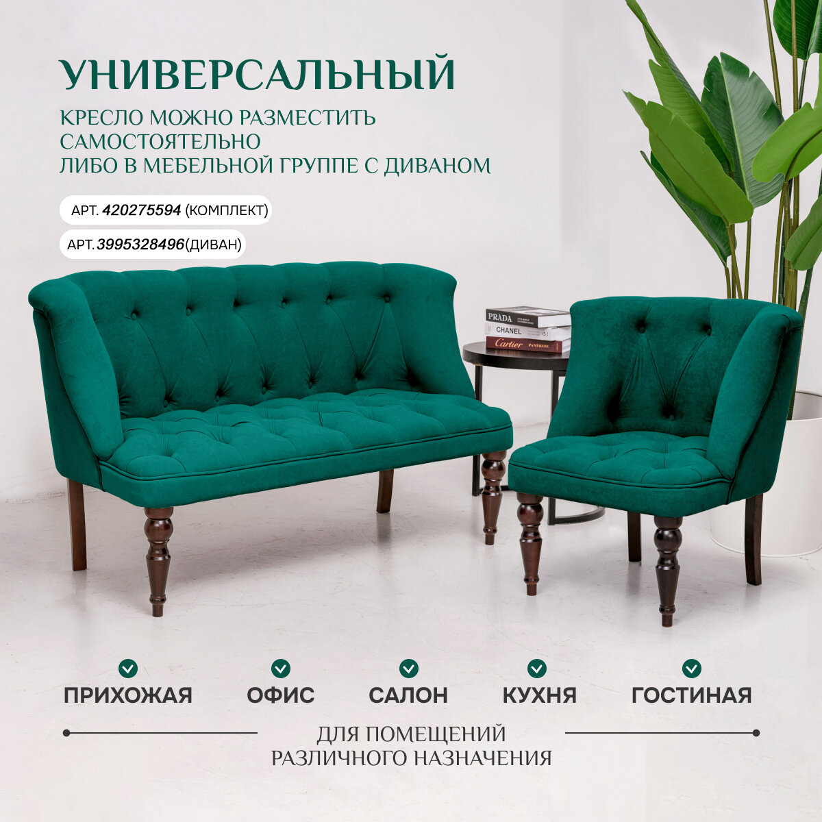 СохранитьКресло Brendoss 207 классик для отдыха, каретная стяжка, материал износостойкий велюр, цвет изумрудный, ножки орех интересное: