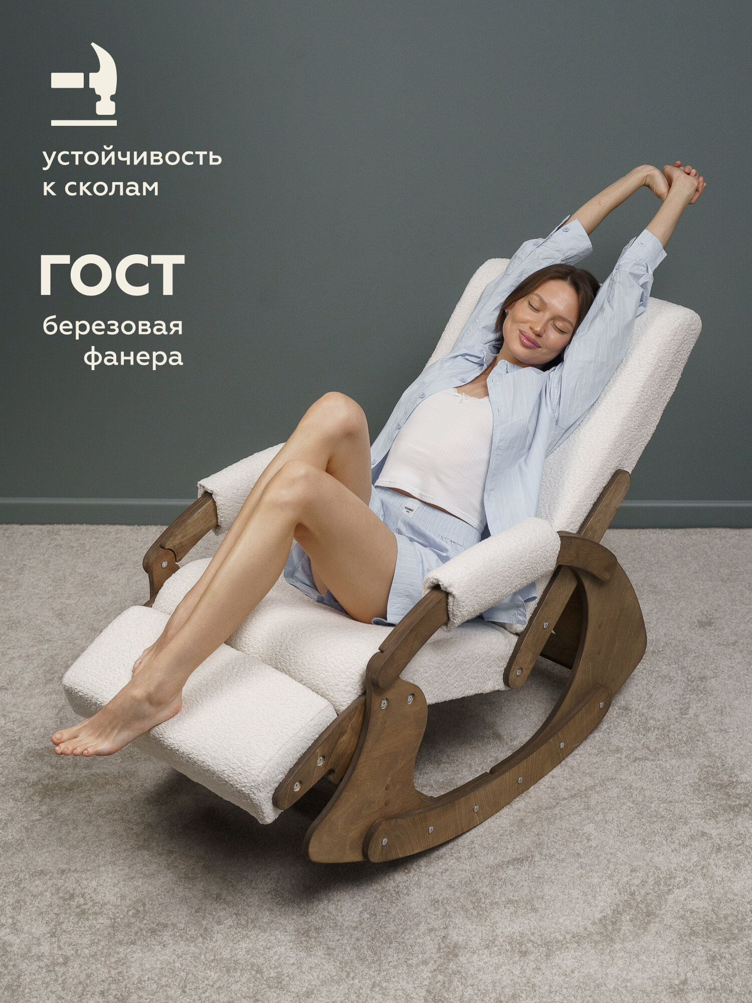 Купить Кресло-качалка для дома и отдыха "БРИЗ" от "Мягкой посадки", обивка белое букле, 60х104х100 см