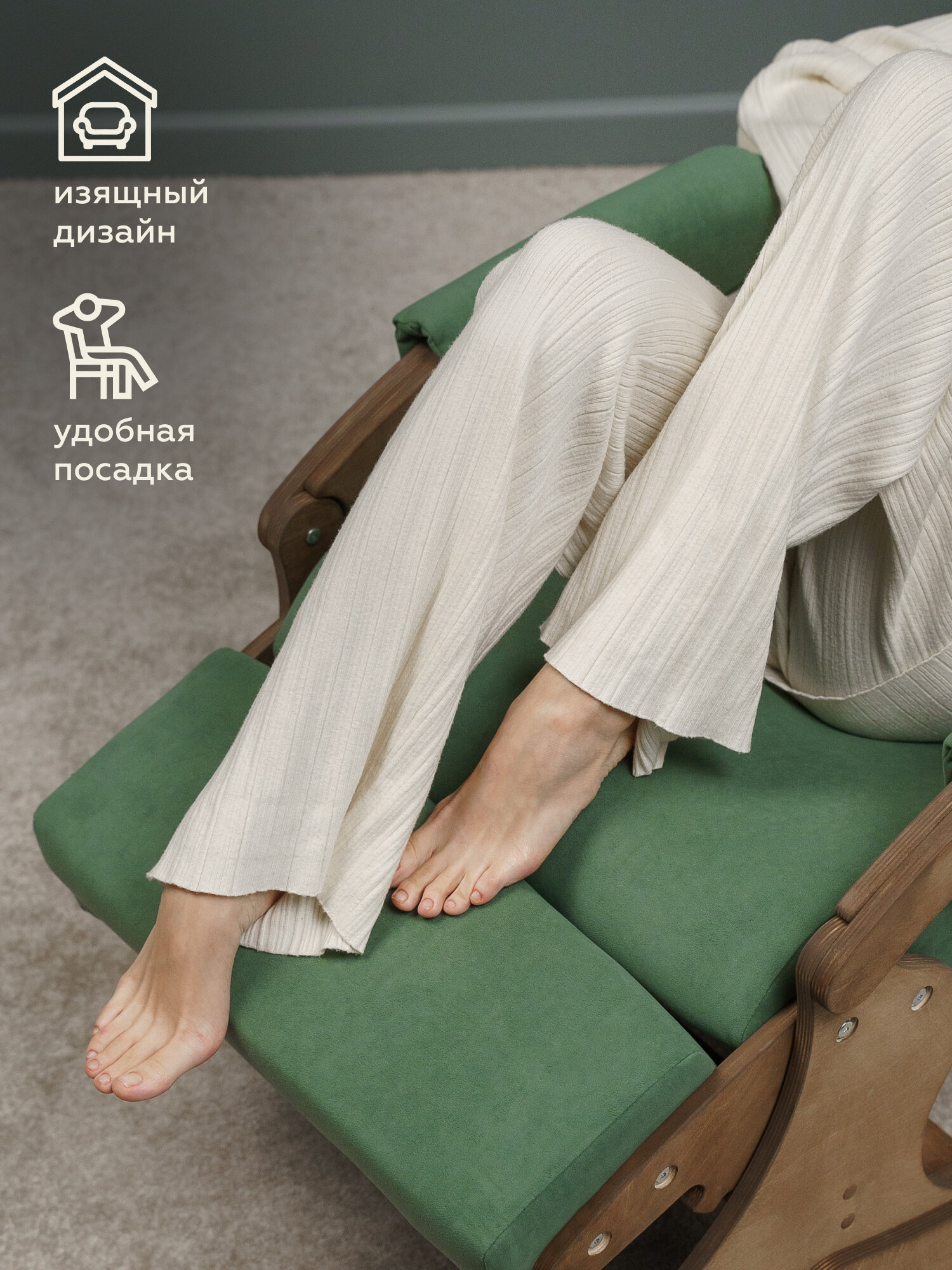 Купить Кресло-качалка для дома и отдыха "БРИЗ" от "Мягкой посадки", обивка зеленый велюр, 60х104х100 см