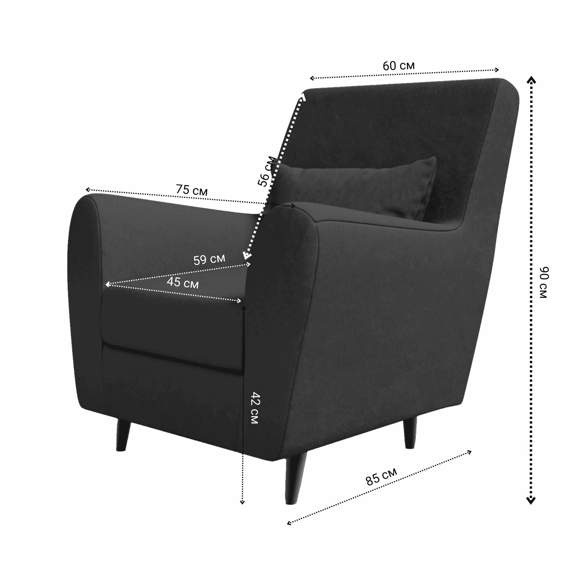 Кресло Либерти W&B, для отдыха, ткань: велюр, цвет: черно-серый