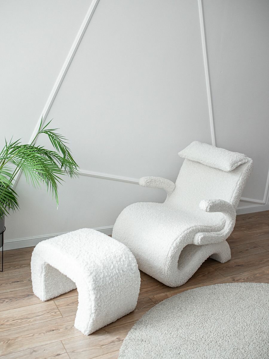 Кресло и пуф Унно для дома и отдыха, классическое кресло, бежевый барашек