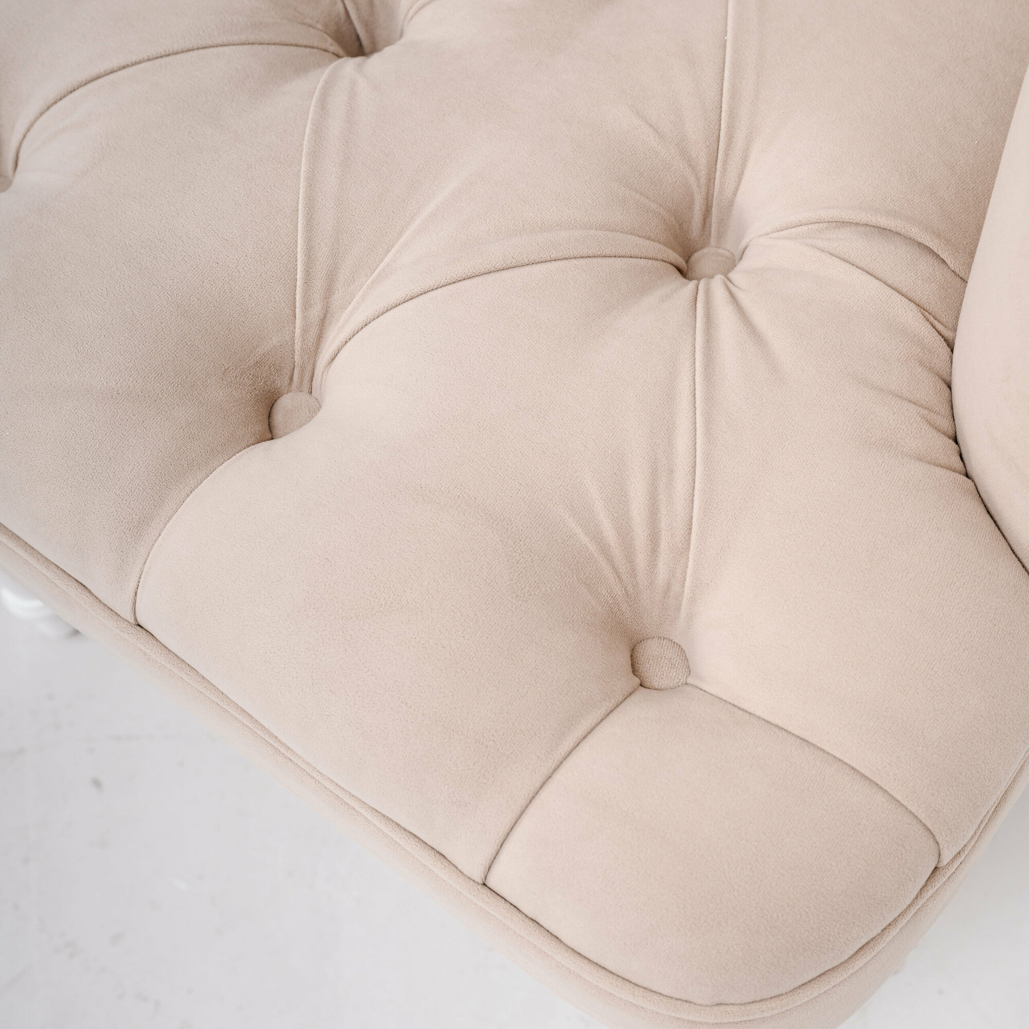 Кресло Brendoss 207 классик для отдыха, каретная стяжка, материал износостойкий велюр, цвет молочный, ножки белые