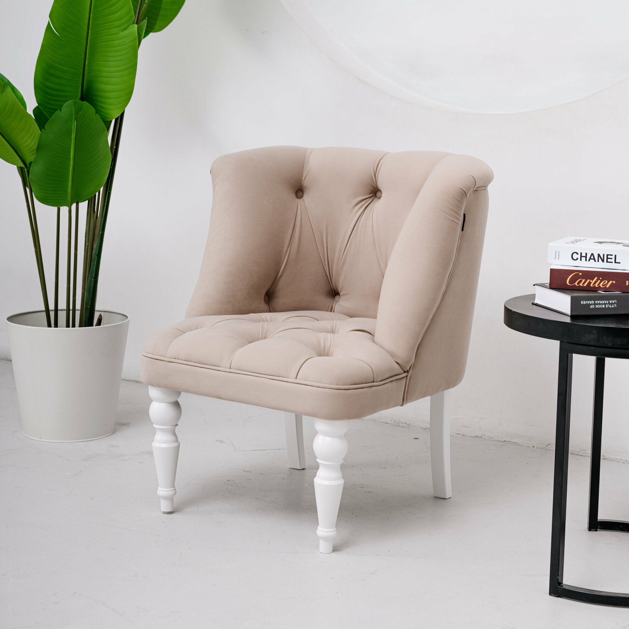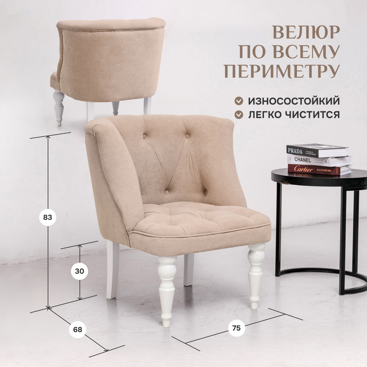 Купить Кресло Brendoss 207 классик для отдыха, каретная стяжка, материал износостойкий велюр, цвет бежевый, ножки белые