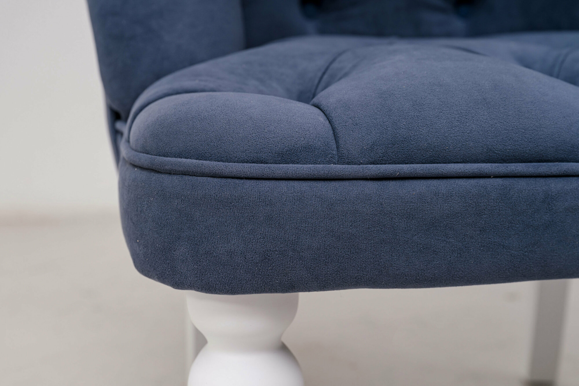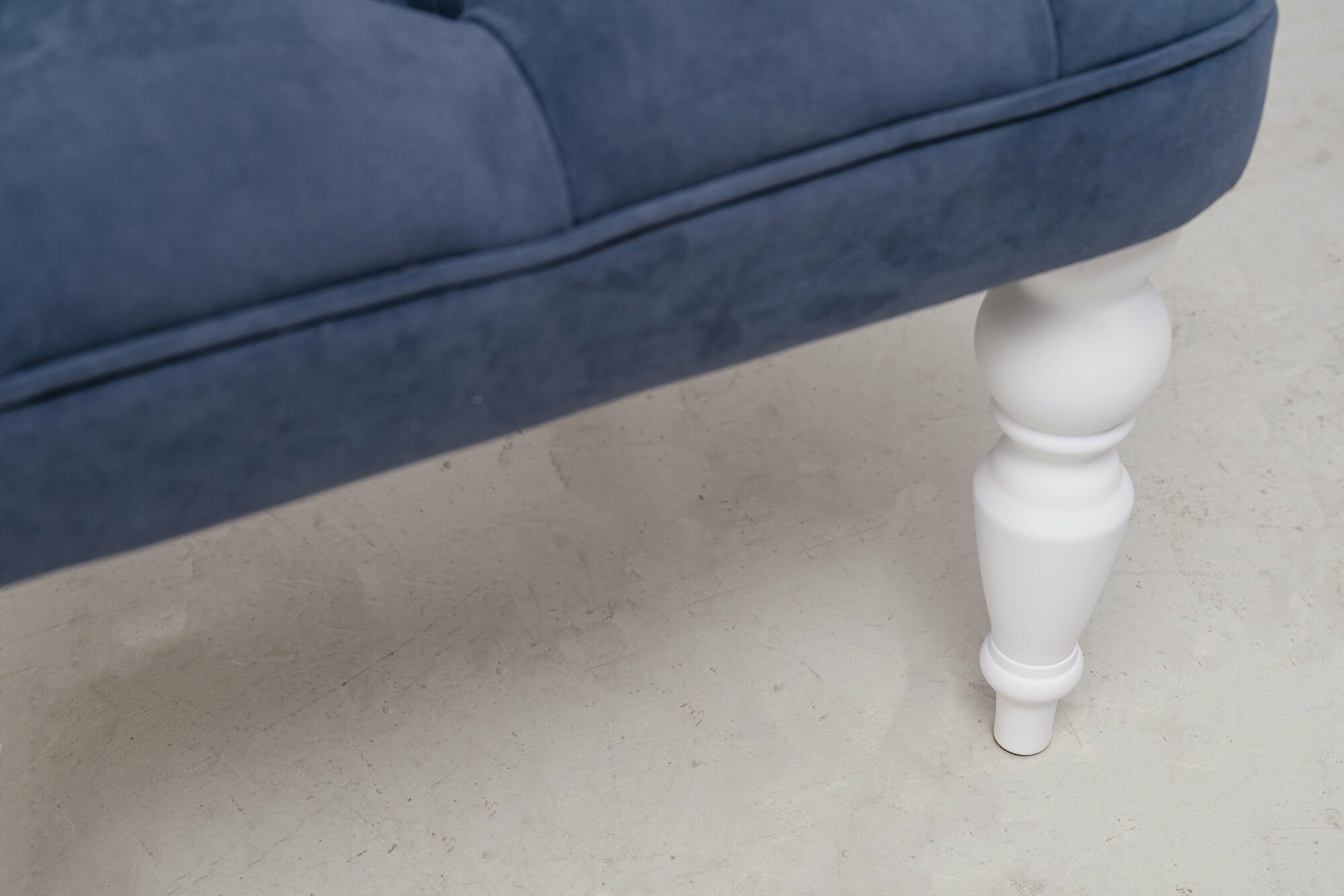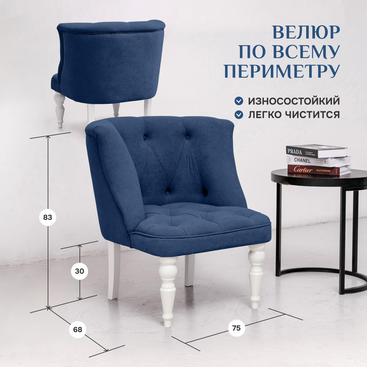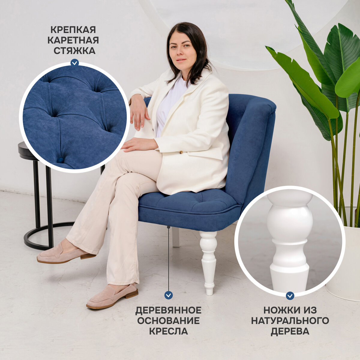 Купить Кресло Brendoss 207 классик для отдыха, каретная стяжка, материал износостойкий велюр, цвет синий, ножки белые
