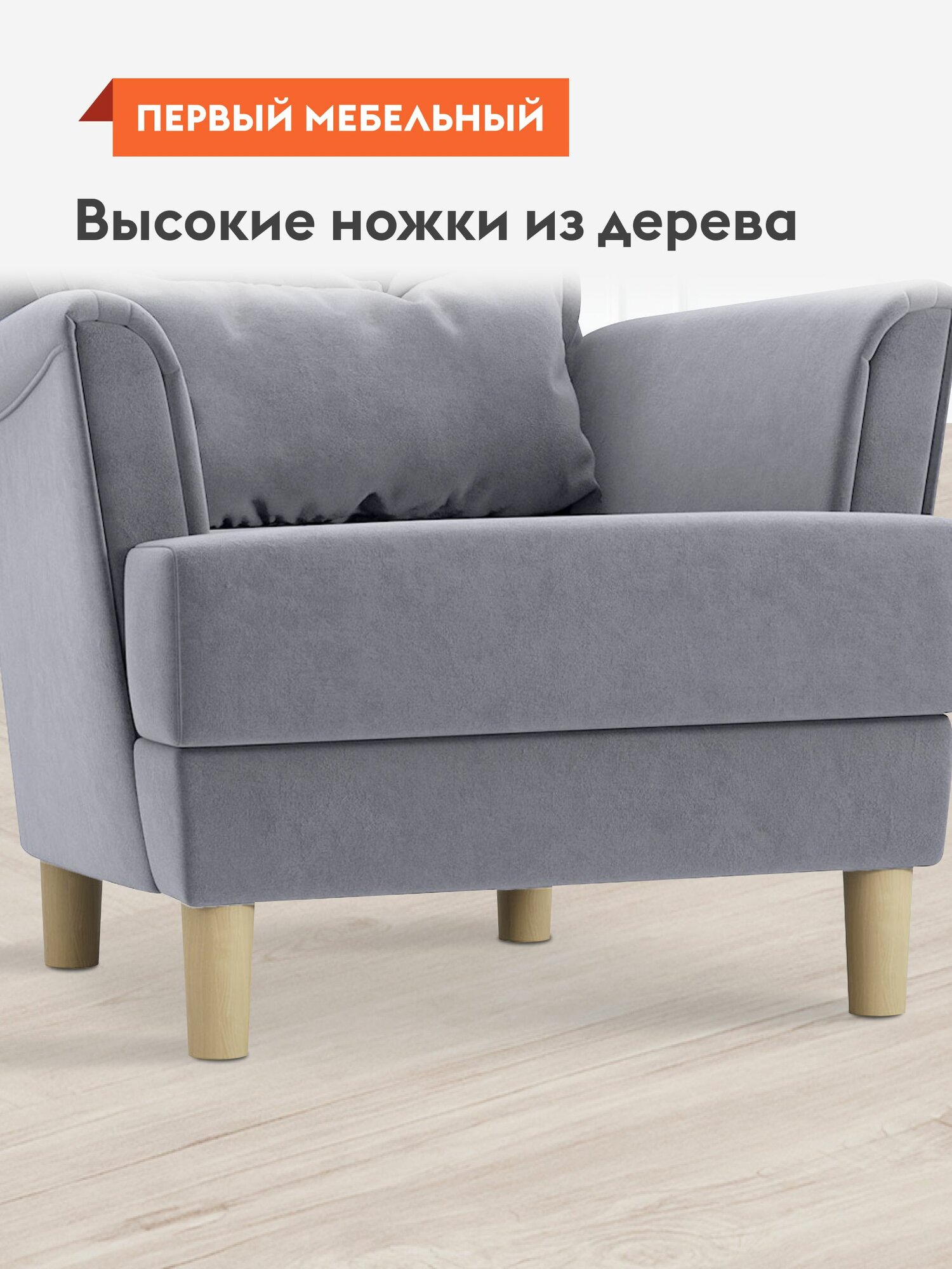 СохранитьКресло мягкое Ирис для отдыха, с высокой спинкой, 83х83х92 см, Серый, велюр, ножки массив дерева интересное: