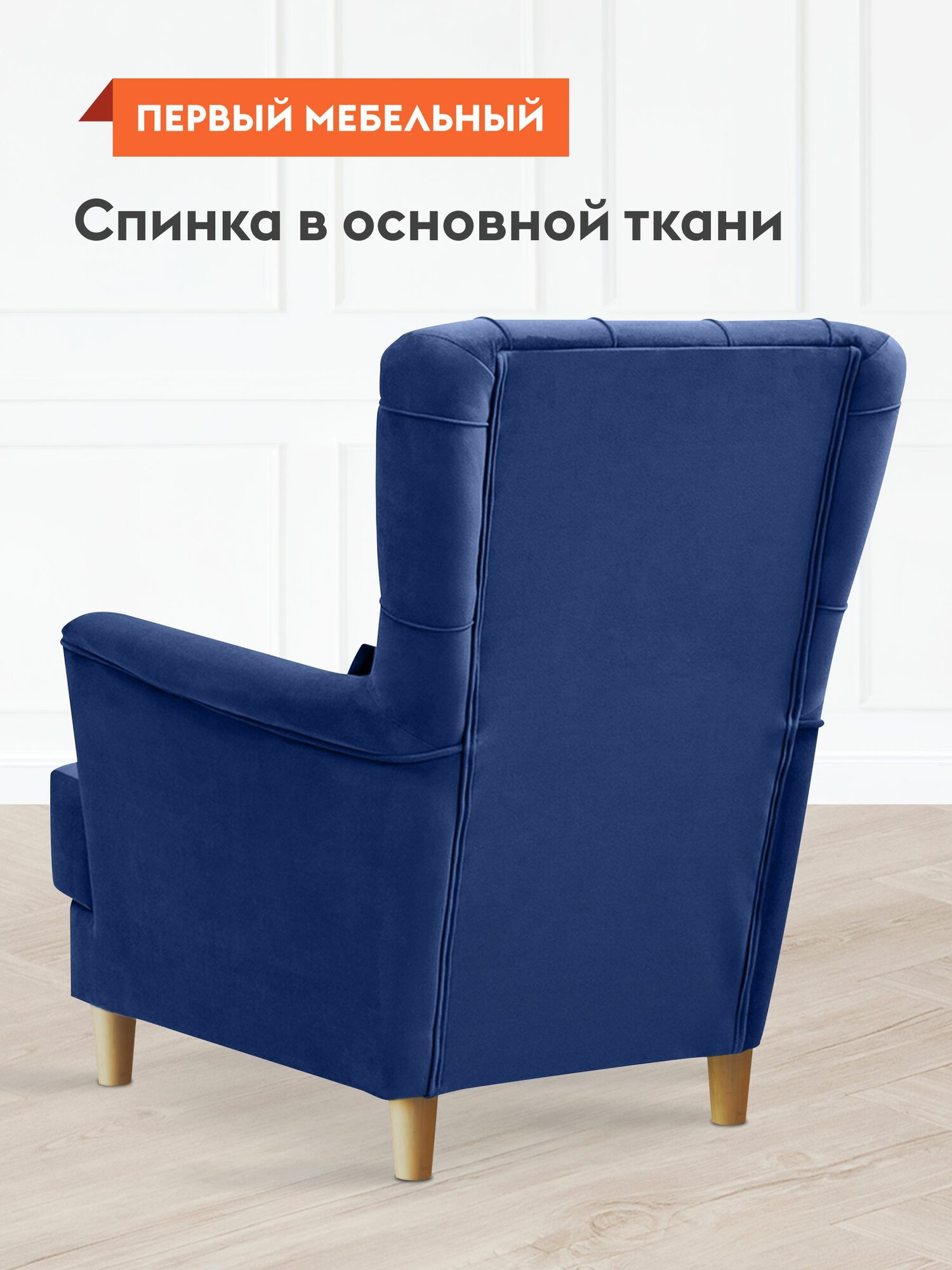 Купить Кресло мягкое Ирис для отдыха, с высокой спинкой, 83х83х92 см, Синий, велюр, ножки массив дерева