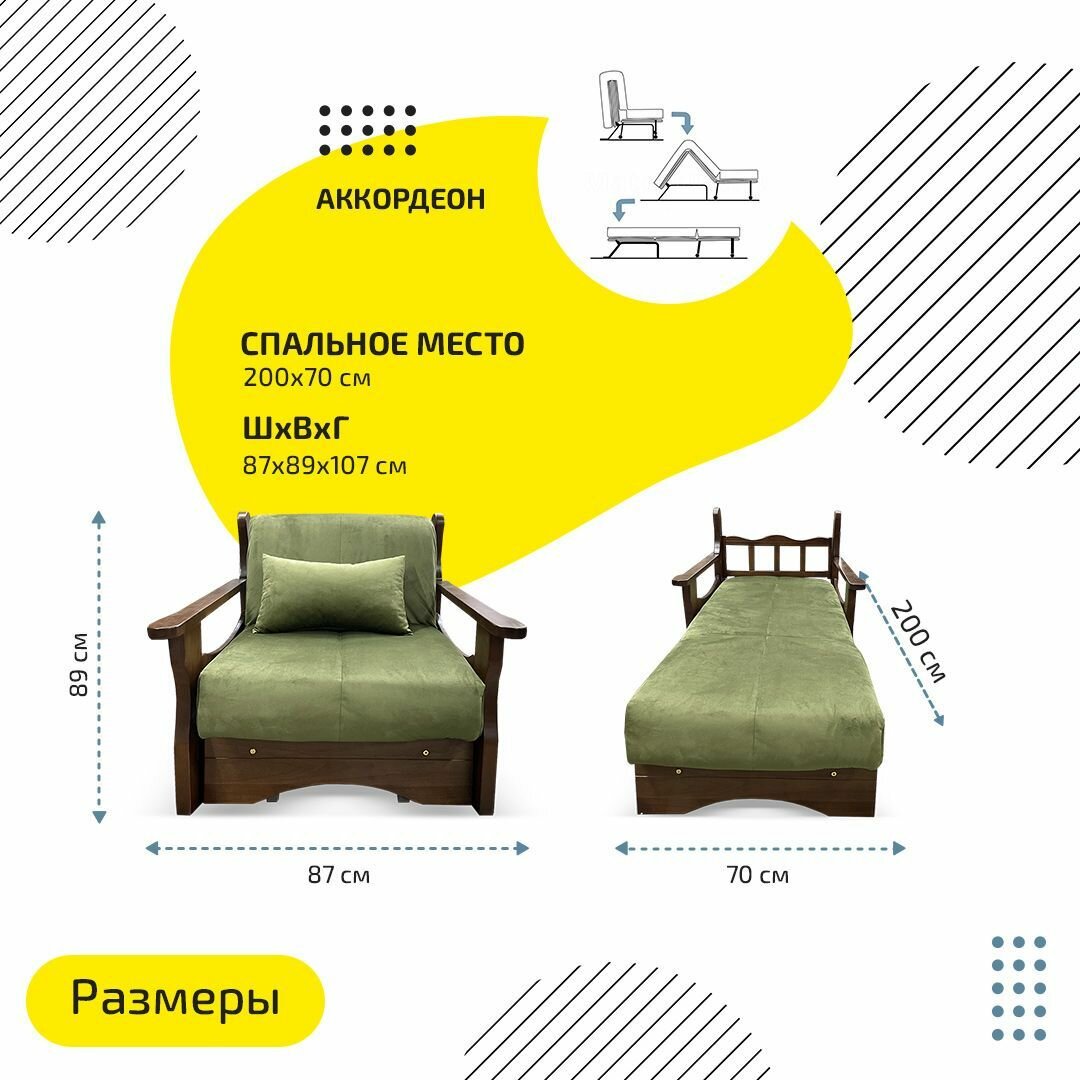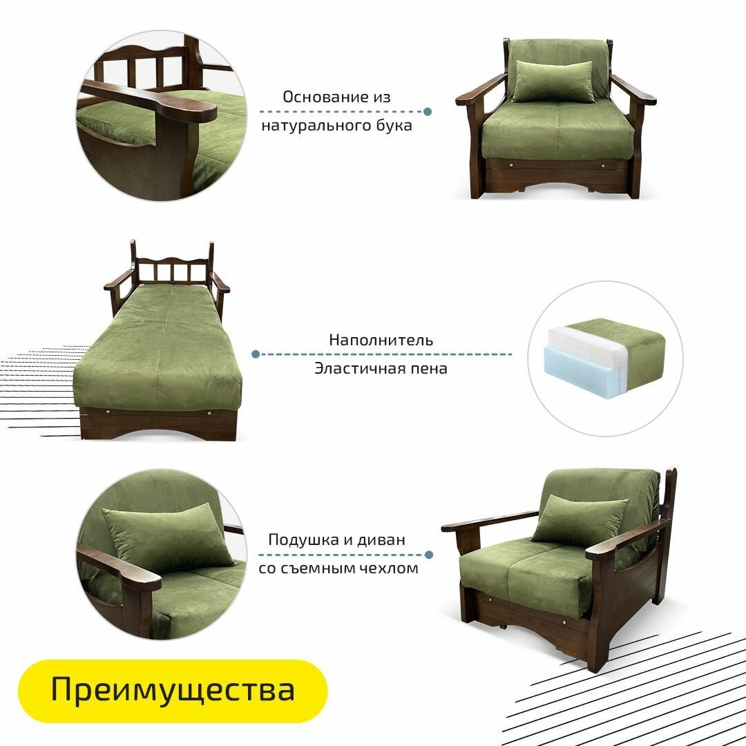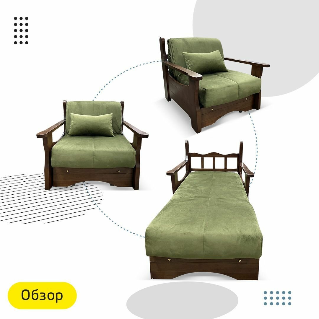 Купить Кресло-Кровать AHDIVAN Креско Д, 87х89х107 см, оливковый велюр, ППУ, деревянные подлокотники