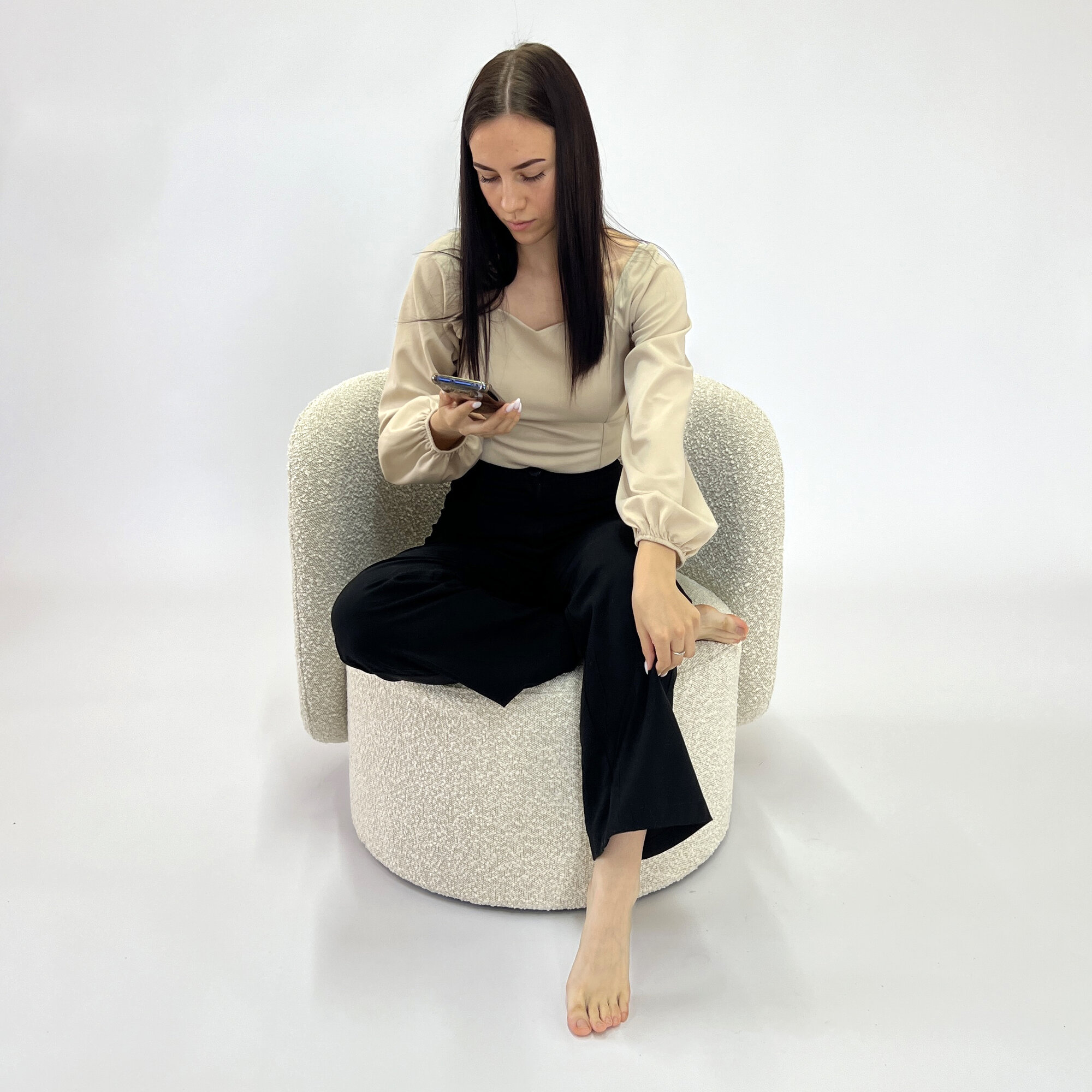 Купить Кресло интерьерное Sol для дома и отдыха, бежевое кресло, букле