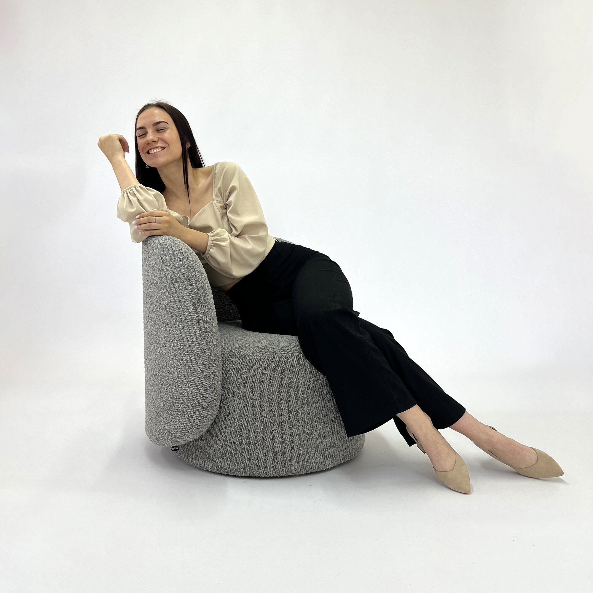 Кресло интерьерное Sol для дома и отдыха, серое кресло, букле интересное:
