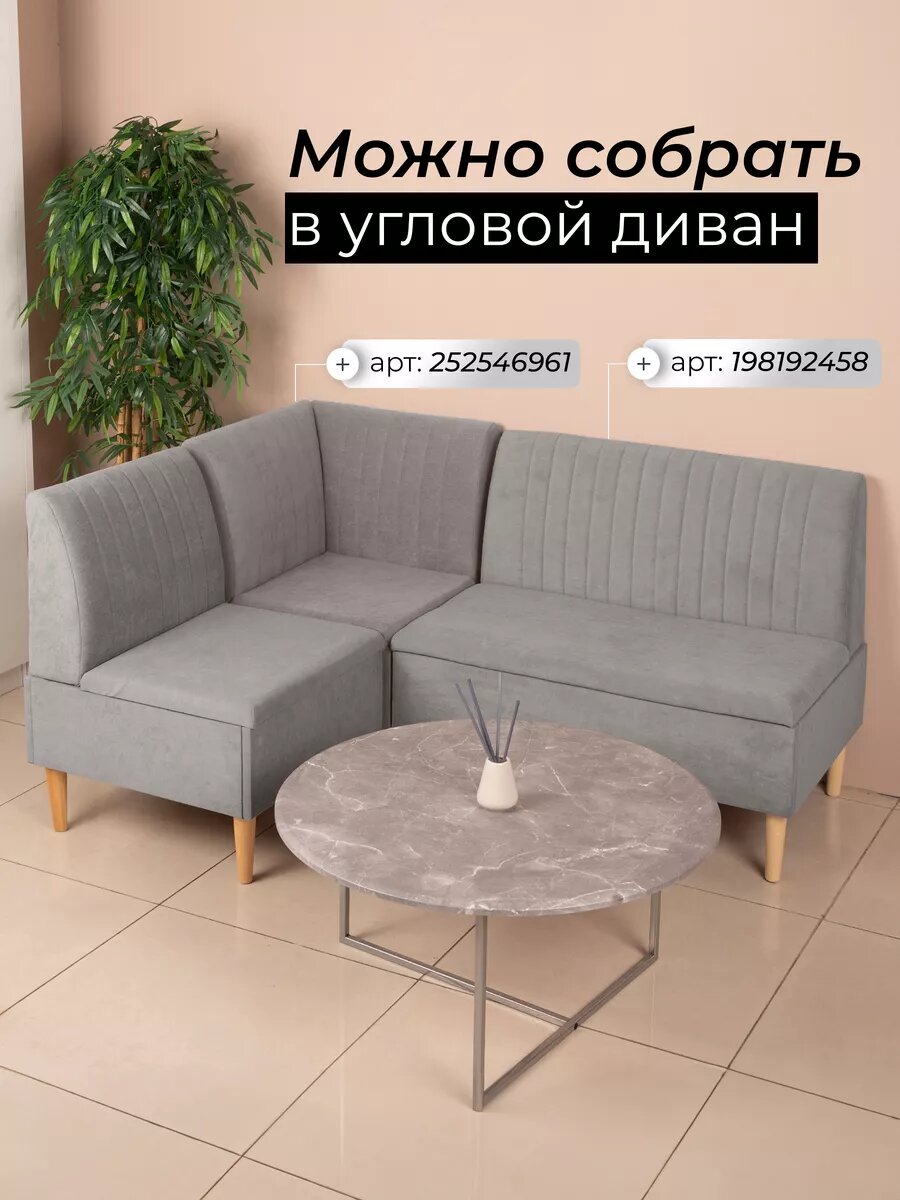 Кресло модульное Руми, велюр, цвет серый, на ножках, с местом для хранения 60х54 см, без подлокотников интересное: