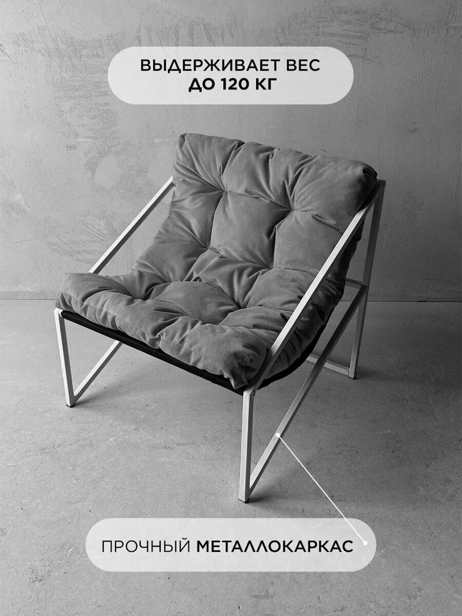 СохранитьКресло мягкое удобное для отдыха, уличное, на балкон, на веранду, в стиле лофт, минимализм, Слэш + велюр серый интересное: