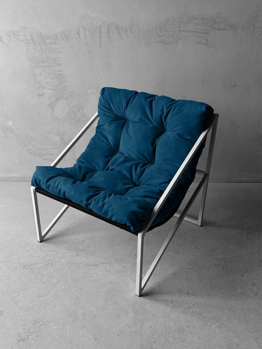СохранитьКресло мягкое удобное для отдыха, уличное, на балкон, на веранду, в стиле лофт, минимализм, Слэш + велюр синий интересное: