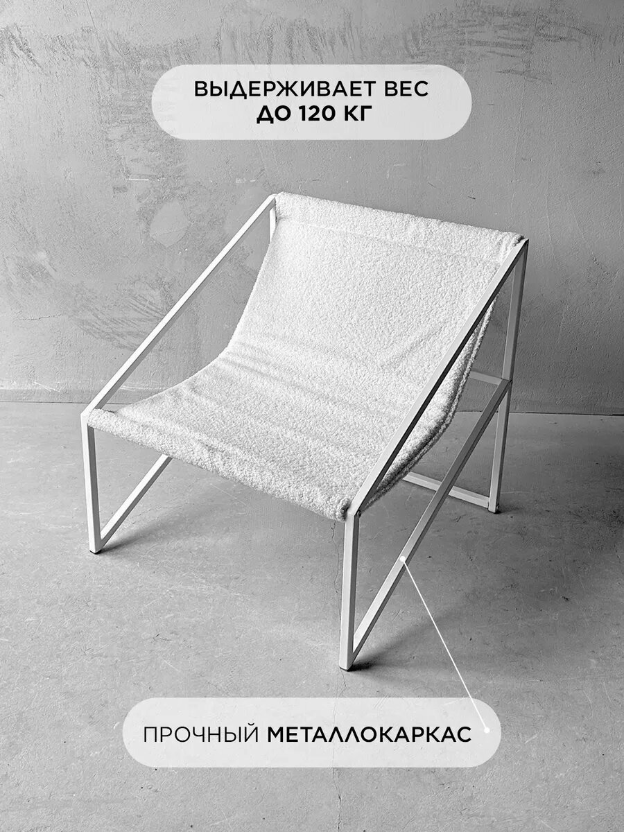 Купить Кресло лофт мягкое удобное для отдыха, уличное, на балкон, на веранду, во двор, в баню, Слэш + белый плюш